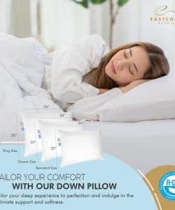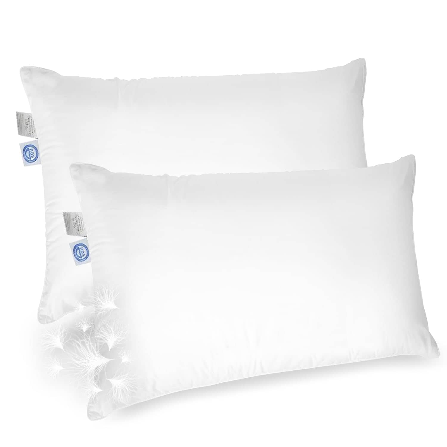 1. Experiencia de lujo premium con nuestras almohadas rellenas con plumas blancas de alta calidad de 600 fill power, que ofrecen un excepcional loft y comodidad tipo nube para una noche de sueño reparador.