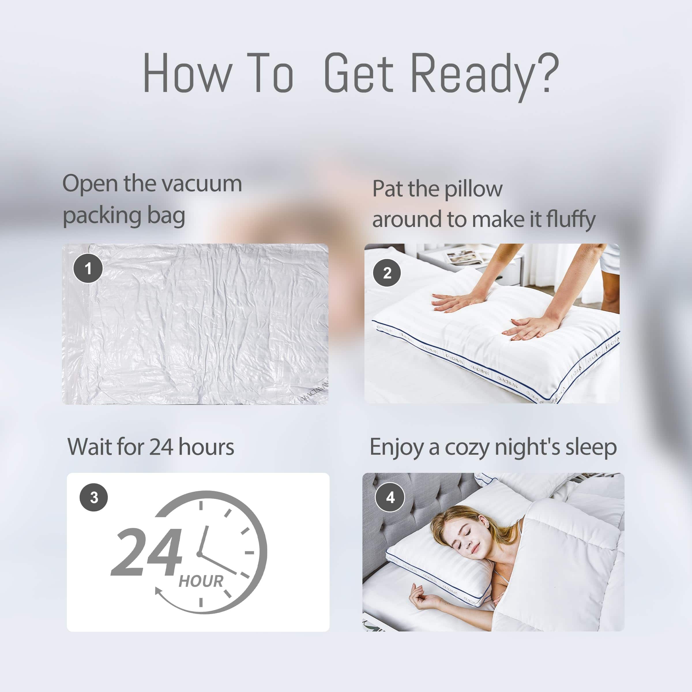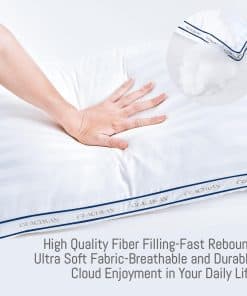 4. FÁCIL CUIDADO – Las almohadas se pueden lavar a máquina en agua fría, secar al sol o secar a baja velocidad. El paquete incluye 2 almohadas de tamaño estándar, 20X26 pulgadas cada una, borde con ribete de 1.5 pulgadas. La almohada está envasada al vacío, espera 24 horas después de golpearla antes de usarla para asegurarte de obtener una experiencia de sueño mejor.