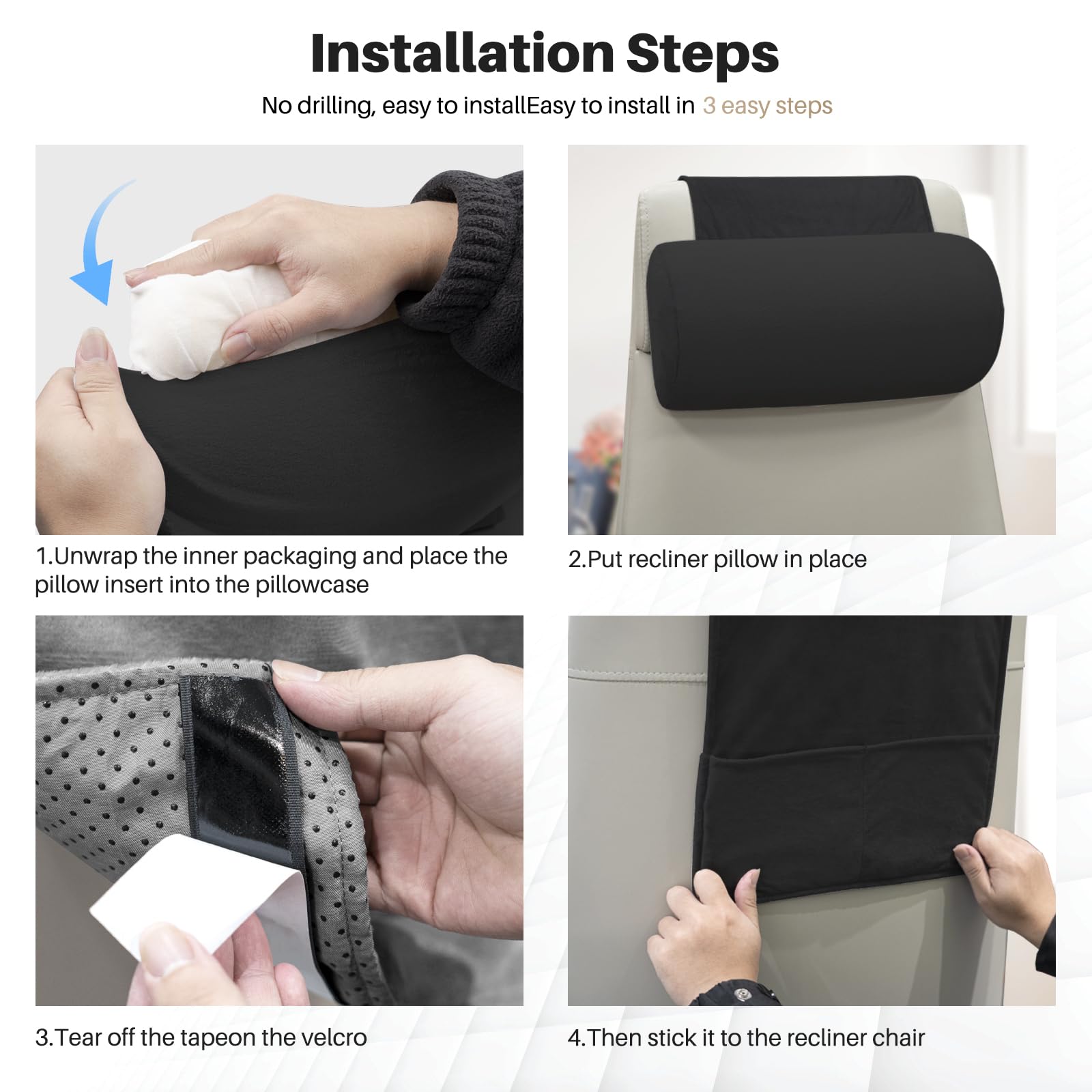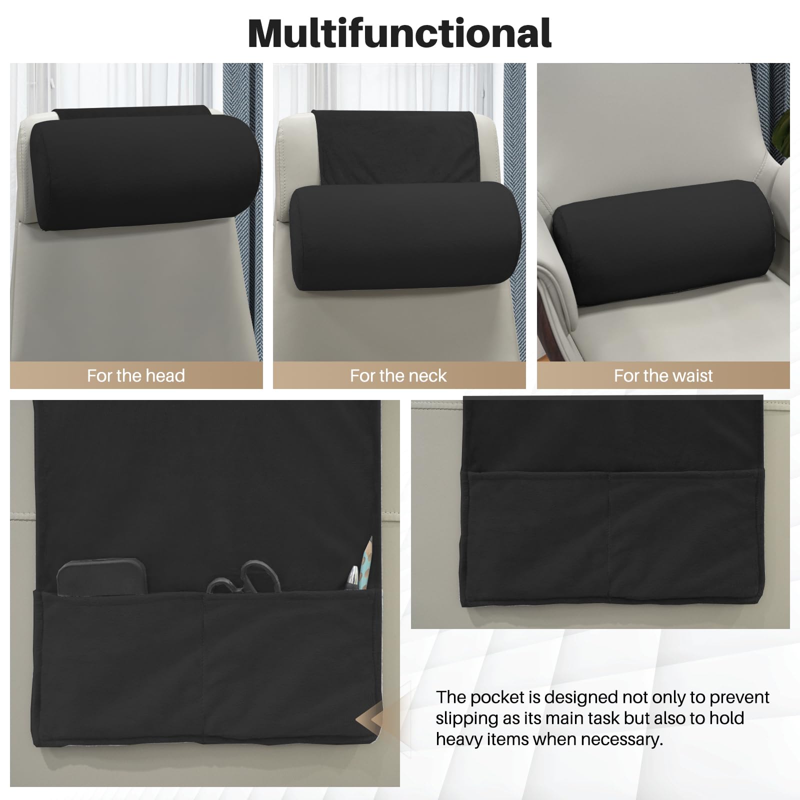 Almohadas para Reposacabezas de Asiento Reclinable NZDWZDN – Cojín de Espuma de Memoria de Soporte para el Cuello con Cubierta de Terciopelo Suave Antideslizante para Aliviar el Cuello Mientras Trabaja, Estudia y Juega (Negro)