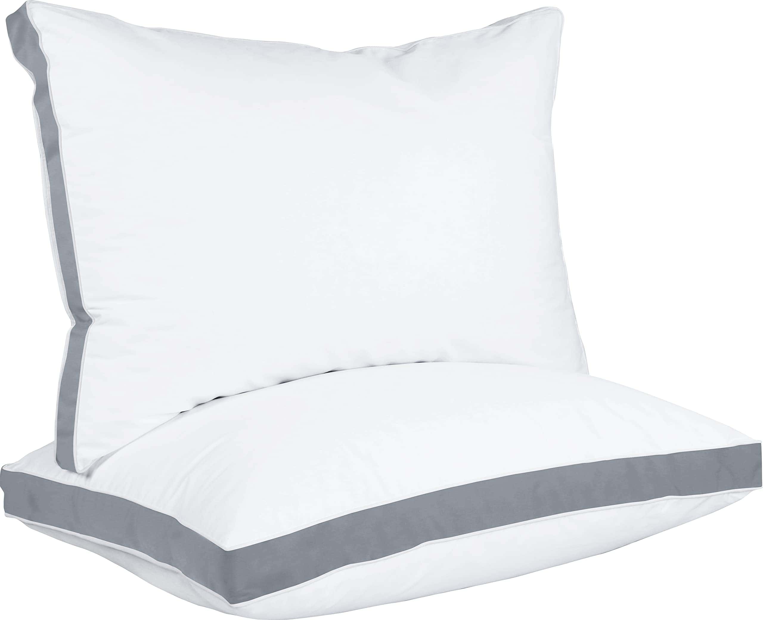 1. Almohadas con Gusset – Juego de 2 almohadas grises con gusset y ribete blanco y doble costura que les da un aspecto sofisticado a las almohadas y también mejora la durabilidad.