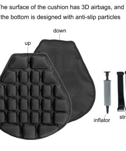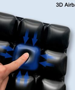 Almohadilla de asiento de aire 3D cómoda con certificación de patente para masaje de contrapeso y cojín de airbag de convección de amortiguación, soportando 150kg/330lb, características integradas para aliviar el estrés reducen los puntos de presión en el coxis y las nalgas para un viaje más cómodo. Hecho de TPU poliuretano duradero y la superficie de algodón Lycra transpirable y cómodo, con fondo diseñado con partículas antideslizantes.