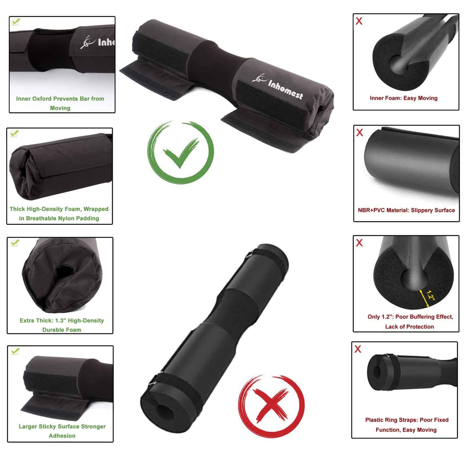 Almohadilla de barra de pesas Inhomest para sentadillas,