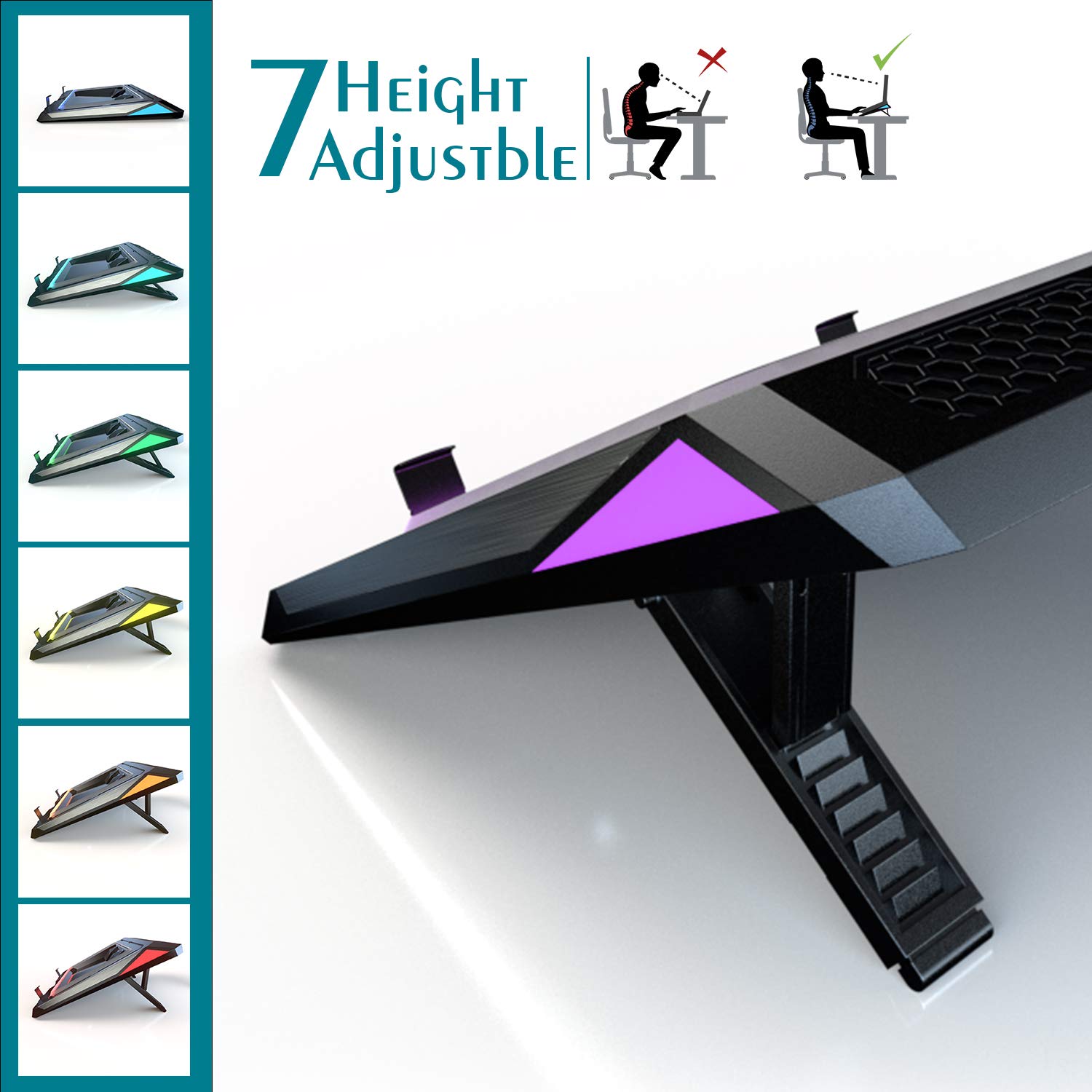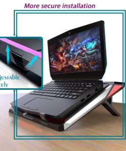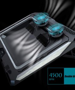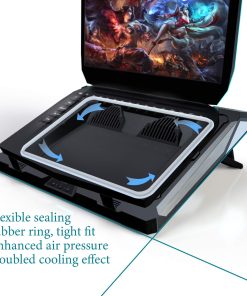 Anillo de goma de sellado para una refrigeración mejorada: El anillo de sellado y el soplador están diseñados para crear una refrigeración superior. Adecuado para laptops de 14-17 pulgadas, la mejor opción para la refrigeración de laptops de juego. Filtración de aire efectiva contra el polvo: Viene con dos filtros de aire para evitar la acumulación de polvo dentro de la laptop. El filtro es fácil de desmontar y limpiar. Iluminación de siete colores: Tiene siete colores de luz, cuatro modos de luz, y las luces se pueden apagar. Soporte con altura ajustable: Diseñado ergonómicamente, la altura del soporte se puede ajustar para evitar daños en la columna vertebral. Velocidad de tercer engranaje: Tiene tres tipos de ajuste de velocidad del viento. Cuando juegas, el engranaje de alta velocidad tiene un buen efecto de enfriamiento, y el engranaje de baja velocidad en la oficina es energéticamente eficiente y respetuoso con el medio ambiente. Firmemente instalado: Bisel antideslizante ajustable en dos direcciones para una buena retención de la laptop. Panel de operaciones frontal: El panel de operaciones está en el lado frontal del enfriador para una fácil operación. Doble USB: Interfaz USB dual, no ocupa la interfaz de la laptop. Lista de embalaje: Almohadilla de enfriamiento GT300 (con anillo de goma de 14 pulgadas) 1, cable de alimentación USB (1.8 m) 1, anillo de goma de 17 pulgadas 1 Peso: 1180g Tamaño: 40034850mm Color: Negro Velocidad del soplador: 4500RPM MAX Luz: Cambio lento de siete colores Interfaz: USB dual Longitud del cable: 1.8m Compatible con laptops: 14-17 pulgadas