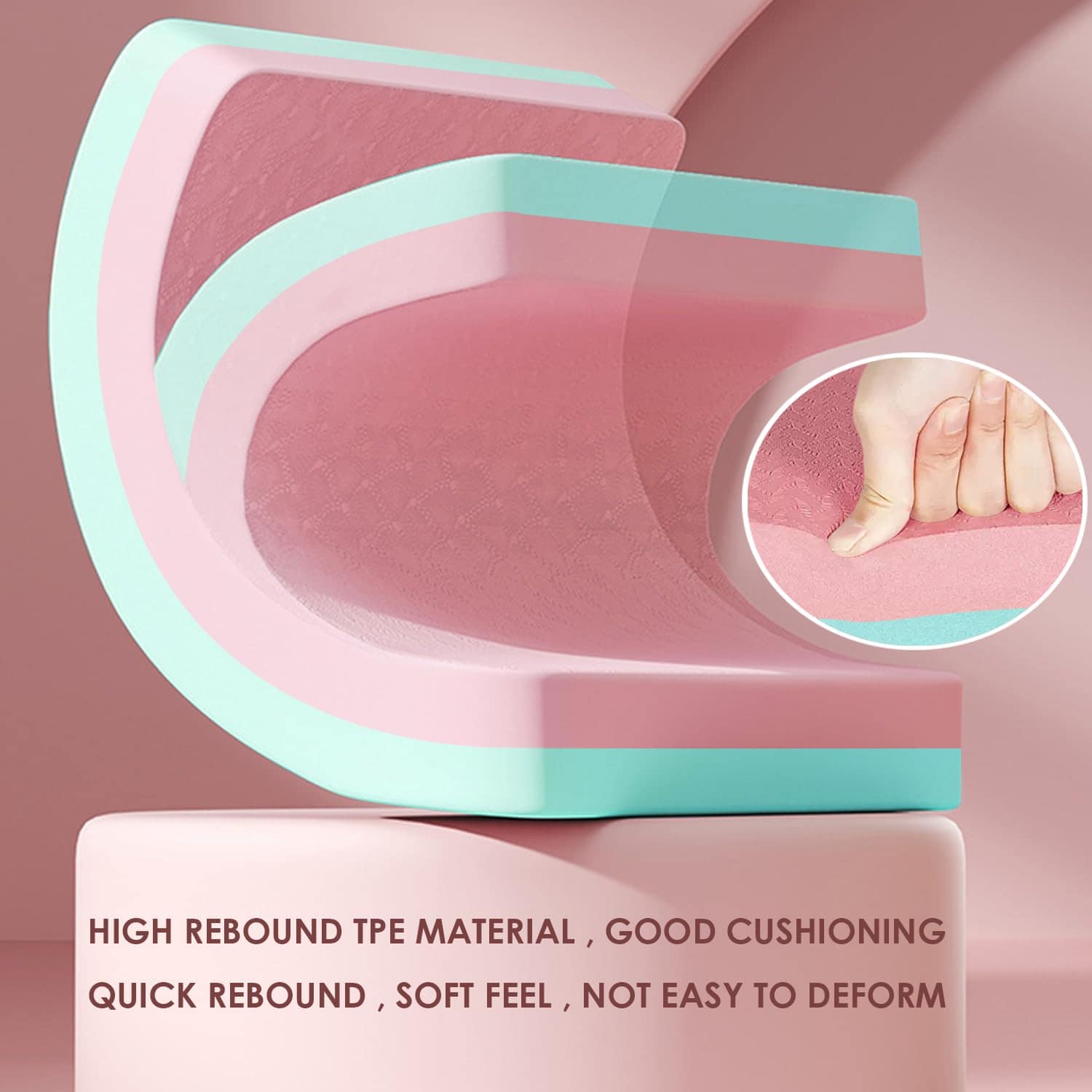 1. ALMOHADILLA DE EQUILIBRIO DE ESPUMA TPE DE ALTA RECUPERACIÓN, Espuma de alta densidad, inodora, tacto suave, buena elasticidad de presión, no se deforma fácilmente, buena amortiguación, ejercicio cómodo; diseño impermeable antideslizante, patrón de diamante, seguro y antideslizante, evita el sudor liberado y el deslizamiento después del ejercicio.