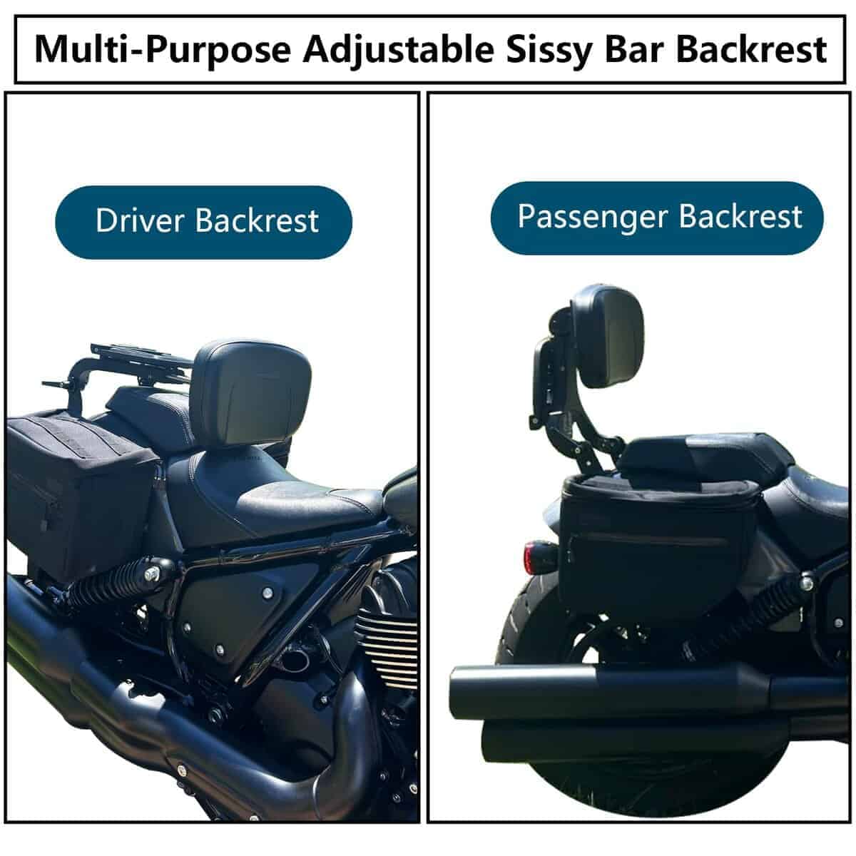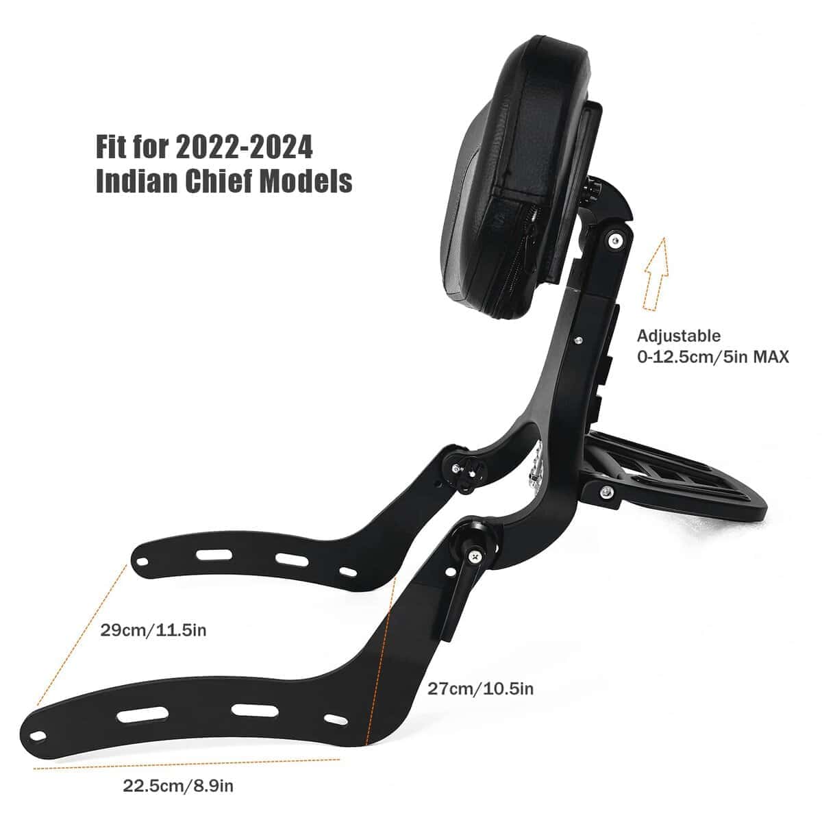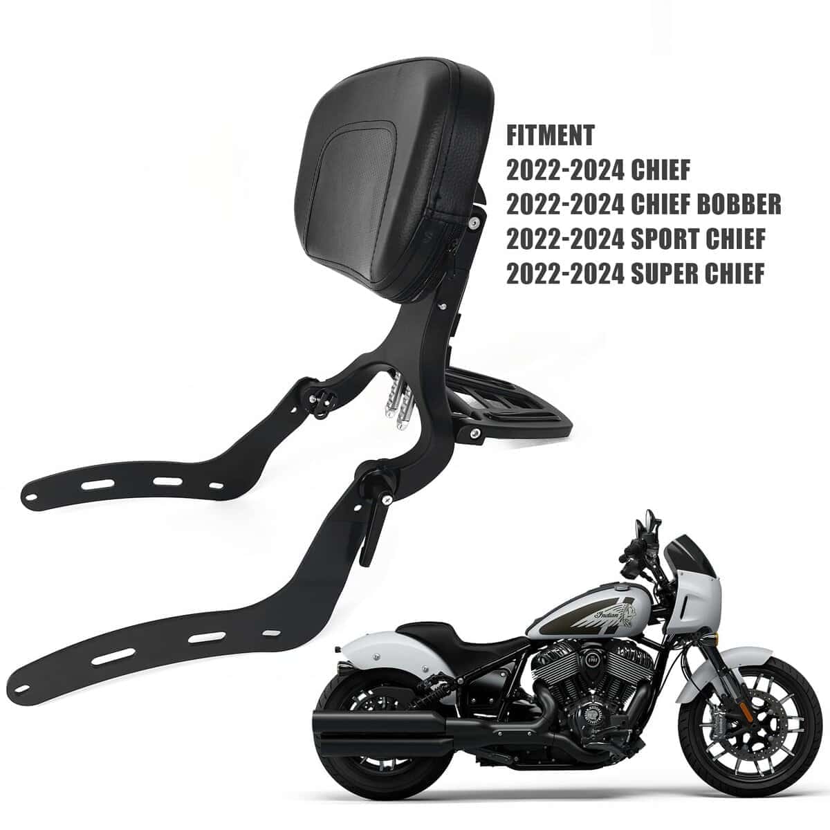 El sissy bar ajustable de DreDoggMoto está diseñado para modelos Indian Chief 2022-2024. Compatible con Indian Chief, Chief Bobber, Sport Chief, y Super Chief. Permite la conversión entre el respaldo del pasajero y del conductor, brindando más comodidad en cada viaje. La altura del sissy bar y la almohadilla es ajustable para adaptarse a tus necesidades, proporcionando un buen soporte para la espalda. La estructura resistente de acero aleado con acabado resistente a la corrosión garantiza una larga vida útil. La almohadilla de respaldo de cuero PU con espuma viscoelástica de alta densidad proporciona un soporte suave y cómodo para el conductor y el pasajero. Fácil de instalar, solo necesitas usar los tornillos para fijar el asiento del pasajero. El diseño se integra perfectamente con el estilo de la motocicleta. Este respaldo para pasajeros puede soportar una gran presión, brindando un gran apoyo para la espalda del conductor o pasajero, ayudando a reducir la fatiga y dolor muscular de la espalda para brindarte a ti y a tus pasajeros la máxima comodidad. Incluye 1 x Almohadilla de respaldo ajustable con portaequipajes y kit de montaje. Los pernos se fijan de forma segura en la parte trasera del asiento del pasajero.