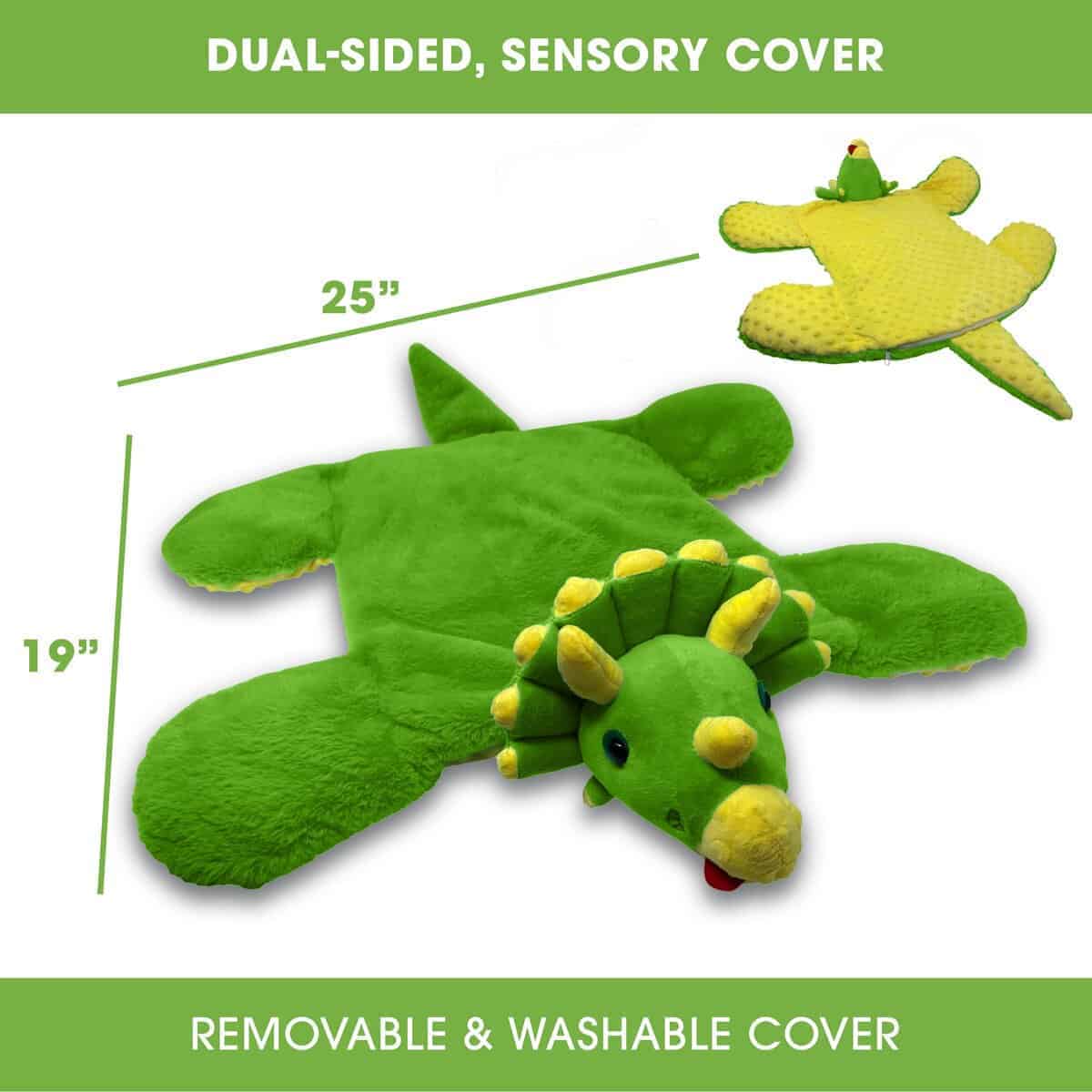 1. Almohadilla ponderada con cubierta removible y lavable. Esto nos diferencia de otros animales ponderados para niños. La cubierta tiene material de felpa súper suave en un lado y puntos minky sensoriales en la barriga, orejas, trompa, cola y patas.