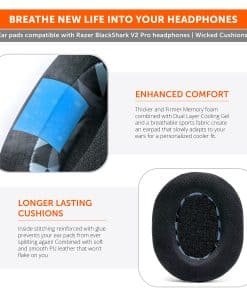 3. Comodidad y Grosor Mejorados: Nuestras almohadillas compatibles con los audífonos Razer Blackshark v2 & v2 Pro son más gruesas que las almohadillas originales, brindando más espacio a tus oídos dentro de la copa para evitar el contacto con los componentes internos. El cuero PU de grado profesional y la tela deportiva altamente transpirable brindan comodidad duradera sin grietas. Estos cojines extra gruesos fueron diseñados para mejorar tu experiencia de juego durante sesiones prolongadas.