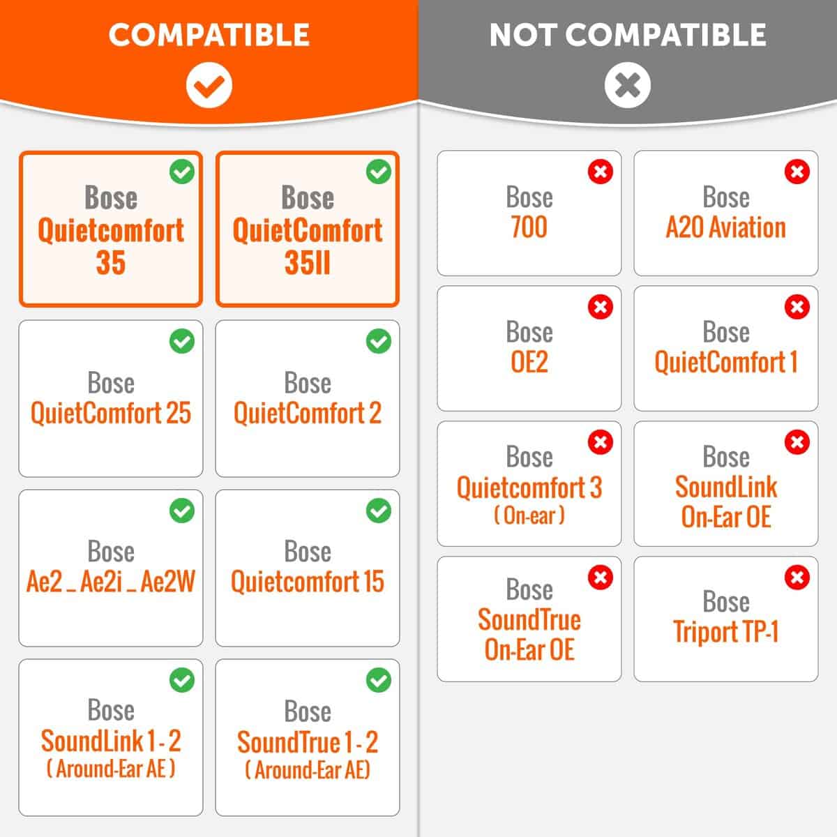 5. Ajuste perfecto: Nuestras almohadillas para los oídos de Wicked Cushions se ajustan perfectamente a los modelos de auriculares Bose QuietComfort 35 & 35ii, Quiet Comfort 2, QC25, QC15, AE2, AE2i, AE2w, SoundTrue y SoundLink. Consigue el ajuste perfecto con nuestra actualización de almohadillas para los oídos.
