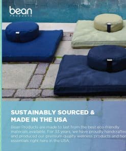 Diseñado por meditadores ávidos, nuestra almohada de yoga de meditación eco-friendly cuenta con una duradera cubierta de lona de algodón de pato de 10 oz. y está rellena con cáscaras de trigo sarraceno orgánico cultivadas en el Medio Oeste de EE. UU. Triple limpiado en pantalla y desinfectado por calor, el relleno está libre de productos químicos dañinos. Construido para toda la vida de uso diario, la resistente cubierta de algodón soporta lavados ocasionales a mano o a máquina, asegurando comodidad duradera para la meditación o sentarse en el suelo. Diseñado conscientemente y expertamente elaborado a mano en Chicago, Illinois para que pueda sentirse orgulloso de su elección de apoyar la calidad local Made in America. Todos los productos de Bean Products están hechos para durar con los mejores materiales locales y ecológicos disponibles – sostenibles y producidos a nivel local y nacionalmente por un negocio familiar de 33 años en EE. UU.