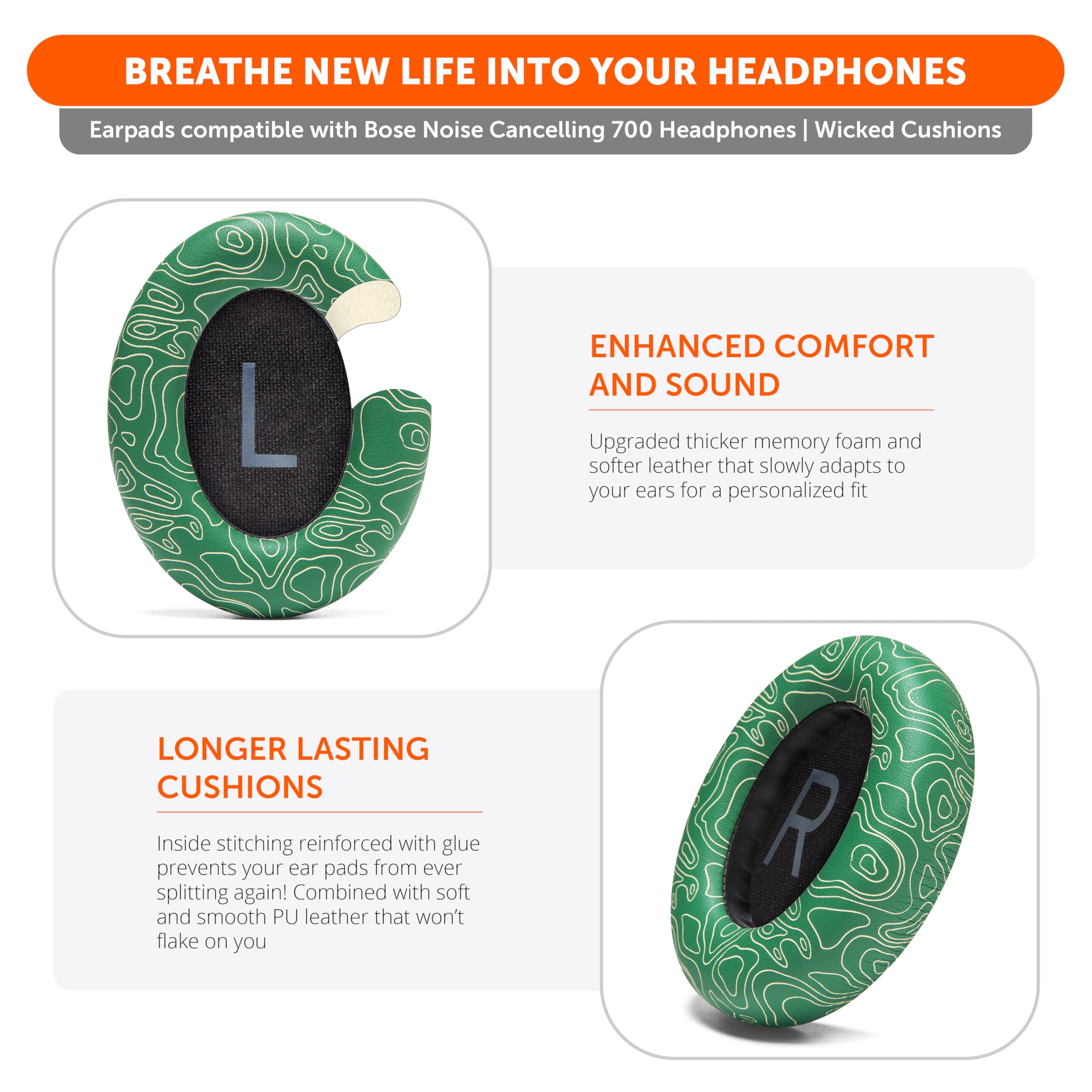 5. Se ajustan como un guante: Estas almohadillas, fabricadas por Wicked Cushions, se ajustan perfectamente a los siguientes modelos de auriculares Bose: Noise Cancelling 700