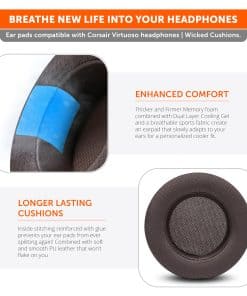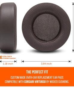 Almohadillas de repuesto WC Freeze Virtuoso – Híbridas de Gel Refrigerante de Tela para Corsair Virtuoso Gaming Headset, Fabricadas por Wicked Cushions, Mejora en Durabilidad, Grosor e Aislamiento de Sonido | Marrón. ¿Se te calientan las orejas después de varias horas de uso de tus auriculares? Las almohadillas de gel refrigerante WC FreeZe, compatibles con Corsair Virtuoso RGB Wireless, mantienen tus orejas frescas durante períodos más largos. Una combinación de gel refrigerante de doble capa (capa interior, capa superior), y un híbrido transpirable de tela deportiva y cuero te ayudan a superar esas largas sesiones de escucha. Estas almohadillas están hechas específicamente para adaptarse a la serie de auriculares Corsair Virtuoso. Puedes actualizar cómodamente tus cojines para orejas en los auriculares Corsair Virtuoso RGB Wireless, Corsair Virtuoso RGB Wireless XT y Corsair Virtuoso RGB Wireless SE. El cuero PU de grado profesional combinado con una tela deportiva extremadamente transpirable hacen que estas almohadillas para las orejas sean perfectas para una comodidad libre de grietas a largo plazo. Estos cojines extra gruesos y extra cómodos fueron diseñados específicamente para mejorar las sesiones de juego o escucha prolongadas. Tus viejas y desgastadas almohadillas para las orejas afectan negativamente el rendimiento del sonido de tus auriculares. Con gel refrigerante de doble capa y una espuma viscoelástica mejorada, estas almohadillas para las orejas se ajustan cómodamente a tus orejas, bloqueando el ruido y mejorando el sonido, para que puedas sumergirte en los ritmos. Un detallado video paso a paso te guiará a través de cómo quitar tus antiguas almohadillas para las orejas e instalar tus nuevas almohadillas de repuesto WC FreeZe Virtuoso, haciendo que todo el proceso sea rápido y sin dolor.