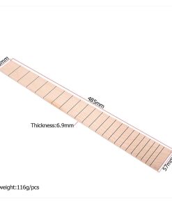 Great DIY accessories for electric guitars. You can pick one to enjoy the fun of DIY and improve your hands-on ability. A must-have replacement parts for guitar makers. Maple wood fingerboard fits for 22 fret electrical guitars. Specification: Color: Wooden, Material: Maple, Length: 485MM, Min.Width: 43mm/1.69inch, Max.Width: 57mm, Size: 510x40x6.5mm, Weight: 116g. Package included: 1 x Guitar Fretboard