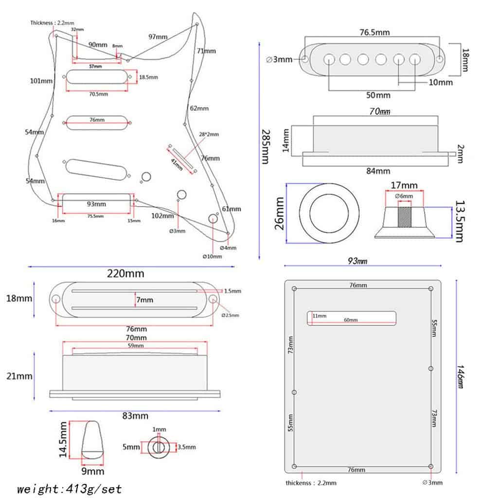 Alnicov Black 3-ply SSS Dual Rail Pickups Loaded Prewired