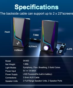 Disfruta de un sonido estéreo Hi-Fi nítido y sin distorsiones con 2 unidades de altavoces duales de imán dual de rango completo de los altavoces de computadora Nylavee, creando un sonido de calidad precisa notable.