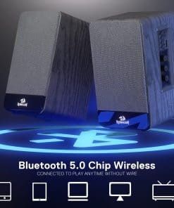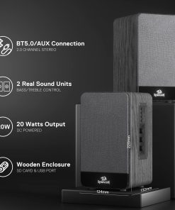 Altavoces de escritorio inalámbricos Redragon GS813, Altavoces de estantería de 2.0 canales con potente salida de 20W, conexión BT 5.0/3.5mm AUX, Control de Perilla de Graves/Agudos y Soporte para Tarjeta TF/USB Flash Drive