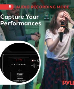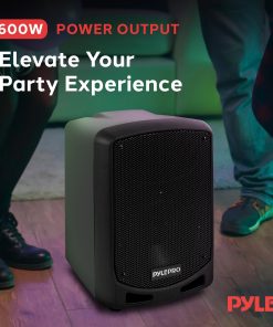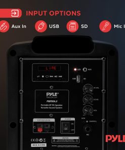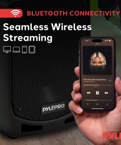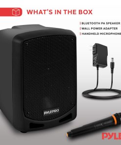 Este Altavoz de Karaoke PA Bluetooth compacto y portátil de Pyle proporciona entretenimiento inalámbrico y te da fácil acceso a tu música. Cuenta con un sistema Bluetooth para que puedas transmitir fácilmente música desde tus iPhones, Androids, iPads, tablets, PCs, y más. También tiene un Modo de Grabación de Audio Digital que es perfecto para ensayos. También puedes configurar el Eco, Graves y Agudos de tu música a tus niveles deseados para la máxima experiencia de entretenimiento. Características: Transmisión inalámbrica de audio Bluetooth Modo de Grabación de Audio Digital Centro de Control de Botones en Panel Trasero Entrada de Micrófono de 1/4» Entrada Aux (3.5mm) Lectores de Tarjeta de Memoria USB Flash + Micro SD Reproducción de Archivos de Audio Digital MP3 Configuración: Controles de Eco, Graves y Agudos Pantalla de Visualización Digital LCD Conector de Entrada de Corriente DC de 12V Externo Montaje de Altavoz de 35mm ¿Qué hay en la Caja: Altavoz PA Micrófono de Mano Adaptador de Corriente de Pared Especificaciones Técnicas: Potencia: 600 Vatios Modo de Frecuencia Inalámbrica: Frecuencia VHF Respuesta de Frecuencia: 55Hz-20kHz Sensibilidad: 95dB (+/-2dB) Impedancia: 4 Ohm Relación S/N: 50dB T.H.D.: 1% Batería Recargable: 4400mAh, 3.7V Batería de Litio Funcionamiento del Micrófono: Requiere (2) x Pilas AA Compatibilidad de Archivos de Audio Digital: MP3, WMA, ACC Tamaño Máximo de Soporte USB/Micro SD: 32 GB Alimentación: 110/220V (Adaptador de Corriente de 9V) Dimensiones del Altavoz (L x An x Al): 10.6 x 9.0 x 13.0 pulgadas.