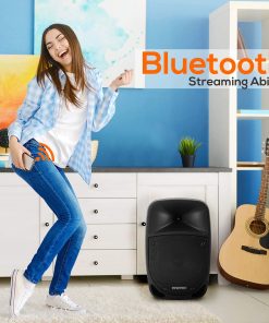 Altavoz PA Compacto y Portátil con Potente Proyección de Sonido de Altavoz Ruidoso Micrófono Estilo Karaoke con Función de Talkover de Prioridad Transmisión de Música Bluetooth Incorporada Batería Recargable Incorporada Incluye Micrófono Inalámbrico de Mano UHF Función de Grabación de Audio Única Reproducción de Sonido Estéreo de Gama Completa Impresionante Respuesta de Bajos Reproducción de Archivos de Audio Digital MP3 Lector de Memoria USB Flash Lector de Tarjeta de Memoria Micro SD Entrada de Micrófono de 1/4 de Pulgada Jack de Audio Auxiliar (3.5mm) Centro de Control de Botones en el Panel Trasero Ajuste de Configuración de Audio Giratorio Luces Indicadoras de Batería LED Manijas de Transporte Convenientes para Portabilidad Opcionalmente Alimentado Externamente a través de la Entrada de Alimentación de 12V Utilizado para Karaoke en Casa y en el Patio Trasero, Eventos Públicos, Control de Multitudes Transmisión Inalámbrica Bluetooth: Configuración de Emparejamiento Bluetooth sin Problemas Recibe Instantáneamente la Transmisión de Música Inalámbrica Trabaja con Todos los Dispositivos de Hoy en Día Smartphones, Tabletas, Computadoras Portátiles, Computadoras, etc. Versión de Bluetooth: 4.2 Nombre de la Red de Bluetooth: ‘Pyle PSBT105A Rango Inalámbrico: Hasta 33 + pies. Función de Grabación: Grabación de Sonido Activada por Botón Simple Graba Audio como se Transmite a Través del Altavoz Graba a través de USB Flash o Ranuras de Tarjeta de Memoria SD Transferencia Fácil a PC y Mac Tipo de Archivo Guardado: WAV Solo Graba Audio a través de Micrófono Lo que hay en la Caja: Altavoz PA Portátil Micrófono Inalámbrico Control Remoto Adaptador de Corriente Especificaciones Técnicas: Potencia de Salida: 1000 Vatios MÁX Modo de Frecuencia Inalámbrica: UHF Sistema de Sonido: Subwoofer de 10 pulgadas, Tweeter de 3 pulgadas Respuesta de Frecuencia: 55Hz-20kHz Sensibilidad: 92dB (+/-2dB) Impedancia: 4 Ohm Relación Señal/Ruido: 80dB T. H. D. : Soporta Reproducción de Archivos de Audio Digital: MP3, WMA, WAV Soporte de Memoria USB / SD: Hasta 32GB Material de Construcción: Gabinete de Altavoz Moldeado de ABS Diseñado Batería Recargable del Altavoz PA: Li-iOn de 3.7V, 2200mAh (x2) Fuente de Alimentación: 120/240V (Adaptador de Corriente de 9V) Dimensiones del Altavoz PA (L x W x H): 12.4 x 10.2 x 19.5 pulgadas Vendido como: 1 Peso: 14.8 lbs.