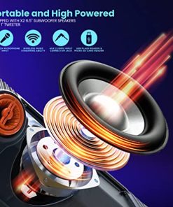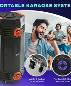 El altavoz PA portátil de karaoke inalámbrico cuenta con un par de subwoofers dobles de 6.5 ‘y un tweeter de 1’ con una potencia máxima de 300 vatios para una reproducción de sonido estéreo envolvente de rango completo. También cuenta con prioridad de grabación y función de Talk-Over de micrófono. Este altavoz de fiesta con Bluetooth cuenta con Bluetooth para dispositivos de transmisión de audio inalámbricos como tabletas, PC, móviles Android y teléfonos inteligentes. Ideal tanto para uso personal en interiores y exteriores, así como para altavoces de DJ y amplificador de voz. El sistema de altavoces de karaoke Bluetooth Party cuenta con una pantalla LED digital, radio FM con pantalla digital LED, lector de flash USB y lector de tarjetas SD para servir como reproductor de MP3, entrada AUX de 3.5 mm y entrada de micrófono de 1/4 ‘. Incluye control remoto, micrófono inalámbrico. El altavoz de fiesta Bluetooth con luces en ruedas cuenta con luces de discoteca LED multicolores que añadirán vida a cualquier ocasión, ideal para fiestas en el patio o reuniones nocturnas cuando se necesita una presencia colorida. Estos altavoces inalámbricos PA con Bluetooth son ideales para karaoke, actuaciones en escenario y control de multitudes. Son totalmente portátiles con una batería recargable integrada de 7.4V 3000mAh, manija y ruedas giratorias.