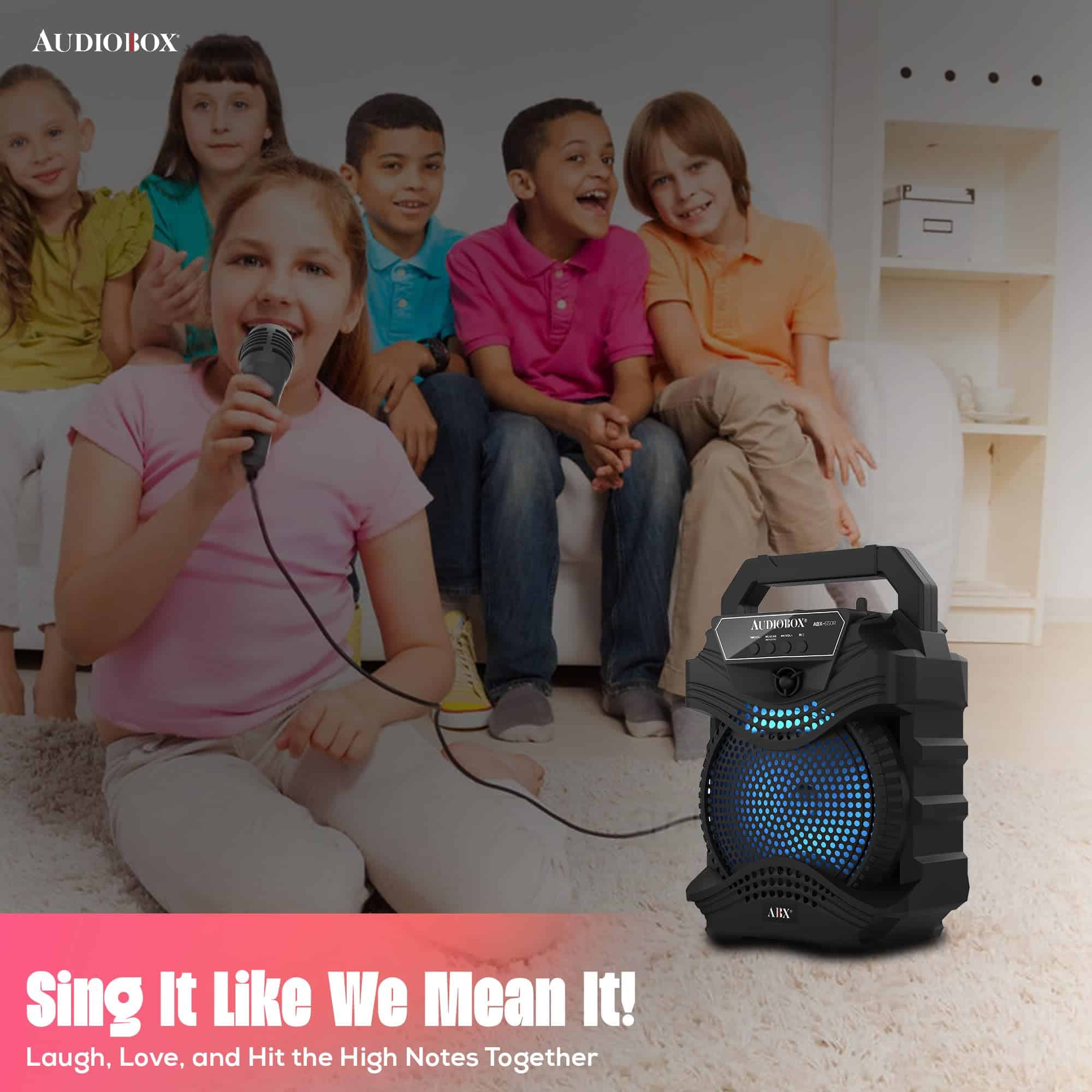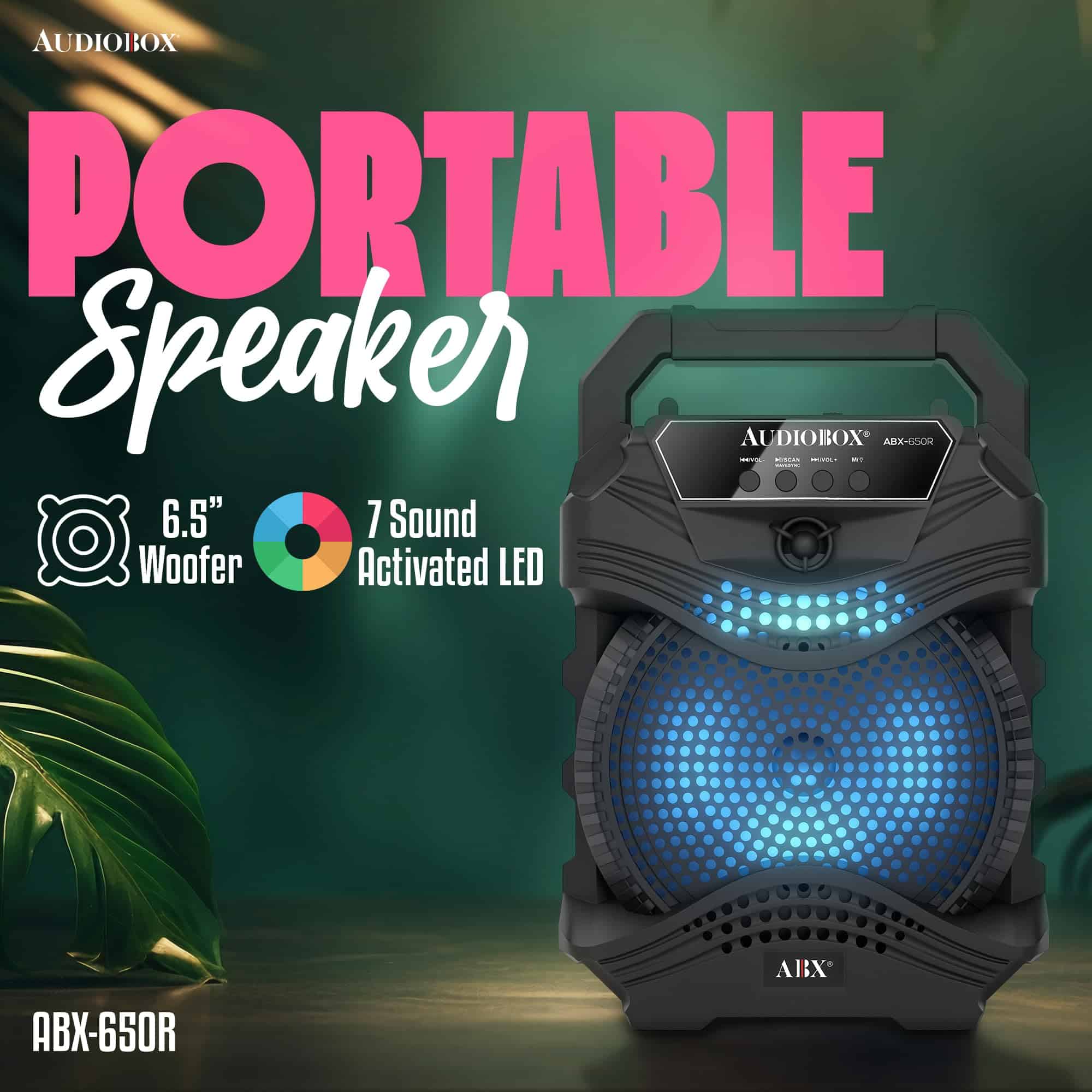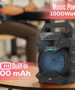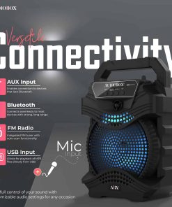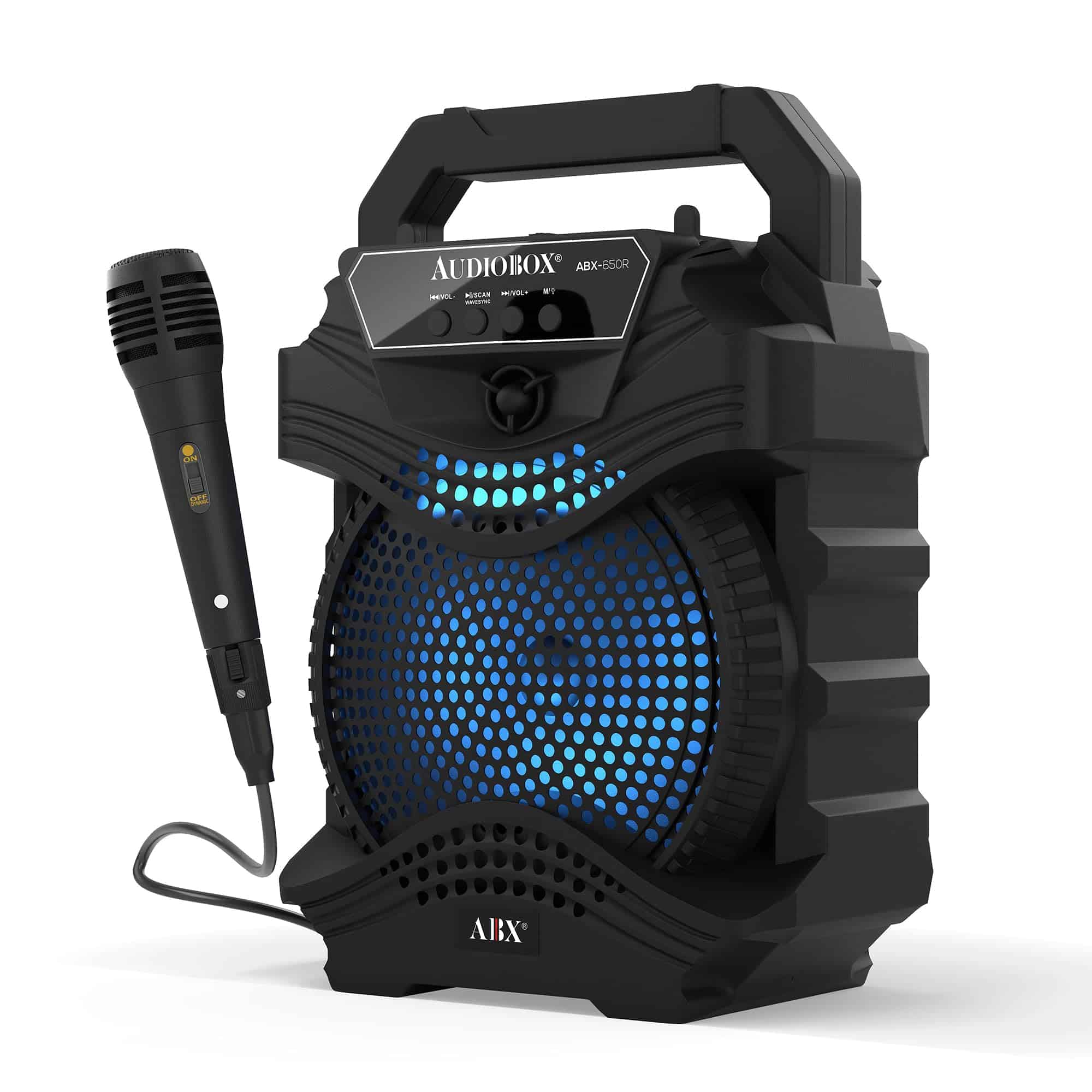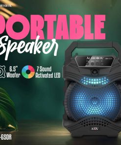 El Altavoz PA portátil AudioBox ABX-650R de 6.5″ es una solución de audio dinámica y versátil para cualquier evento, desde reuniones íntimas hasta fiestas al aire libre. Equipado con la Tecnología WaveSync, este altavoz ofrece una conectividad Bluetooth sin esfuerzo, lo que te permite transmitir tu música favorita con facilidad. Las luces LED de woofer integradas en 7 colores crean una experiencia visual cautivadora, pulsando al ritmo de la música. Con una potente salida de potencia musical de 1000 Watts y un micrófono con cable incluido, el ABX-650R es perfecto para los entusiastas del karaoke, ofreciendo una calidad de sonido clara y robusta. Su diseño compacto, completo con un asa de transporte, garantiza portabilidad, mientras que la batería de iones de litio de 800mAh y 3.7V incorporada proporciona un tiempo de reproducción prolongado. Ya sea que estés organizando una fiesta, una noche de karaoke o necesites música sobre la marcha, el ABX-650R está diseñado para impresionar.