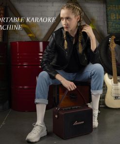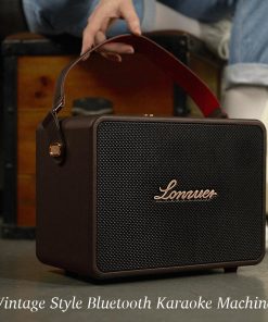 Altavoz portátil de karaoke con diseño retro y elegante, ideal para adultos que desean un sistema de karaoke de alta calidad. Incluye 2 micrófonos inalámbricos que ofrecen libertad para actuar sin límites y tecnología de audio digital de última generación para una calidad de sonido impecable. Conexión inalámbrica Bluetooth 5.3 de hasta 33 pies de alcance, compatible con dispositivos como teléfonos, tabletas, TV y PC. La batería de 18000mAh garantiza más de 10 horas de reproducción continua después de una carga completa. Con una potencia de salida de 120W, altavoz produce un sonido más claro, bajos más fuertes y elimina todo el ruido. Construido con cuero premium, marco de madera duradero y panel frontal tejido, este altavoz es una pieza exquisita que aporta una elegancia clásica a tu hogar. Más que un simple altavoz, esta máquina de karaoke portátil es una obra de arte.