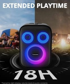 El altavoz portátil Tronsmart Halo 200 es la solución perfecta para todas tus necesidades de audio en eventos al aire libre y reuniones corporativas. Con un diseño ligero y portátil, es fácil de transportar y configurar en cuestión de segundos. Su sistema de altavoz integrado con entrada de micrófono y guitarra, control de volumen independiente, ajuste de ecualizador, cancelación de eco, y otras funciones avanzadas garantizan una calidad de sonido óptima en todo momento. La batería de 15,000mAh ofrece hasta 18 horas de reproducción continua, permitiéndote disfrutar de música toda la noche. Con 120W de potencia y conexión TuneConn, este altavoz puede emparejarse con más de 100 altavoces al mismo tiempo, proporcionando un sonido potente y envolvente. Además, la aplicación de mezcla de audio te permite controlar parámetros como el volumen y el tono de forma inalámbrica, mientras que las 5 modos de iluminación añaden un toque de estilo a tus eventos musicales.