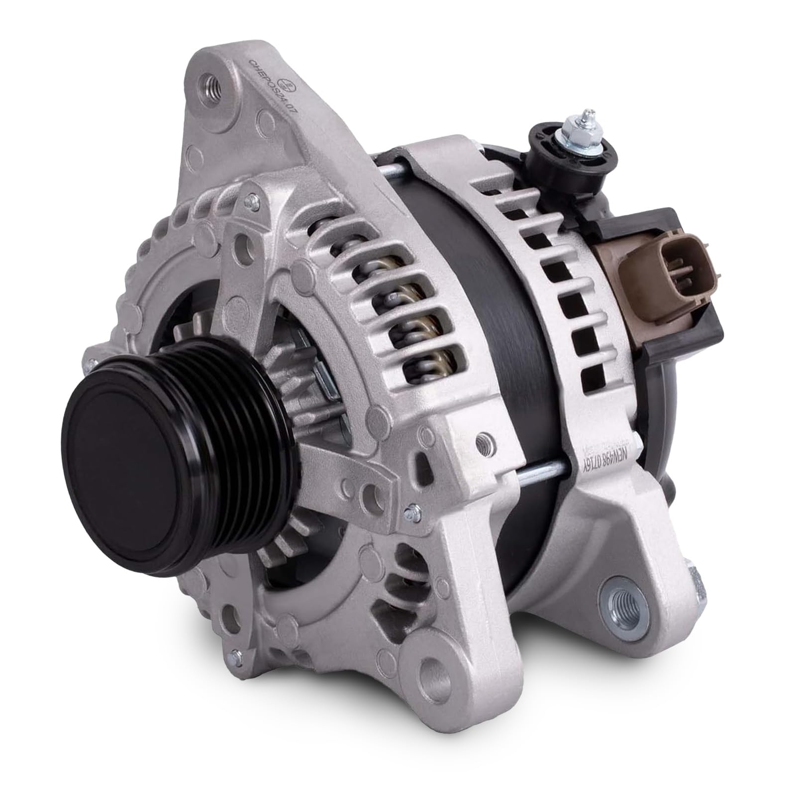 3. Material premium: Este alternador está hecho de aluminio premium, bobina de cobre puro engrosada, potencia fuerte, suministro de energía estable. Cuenta con rodamientos con lubricante de alta temperatura y sellos de goma de doble labio para reducir la fricción, vibración y ruido. Se ha probado a fondo para garantizar rendimiento y calidad duradera.