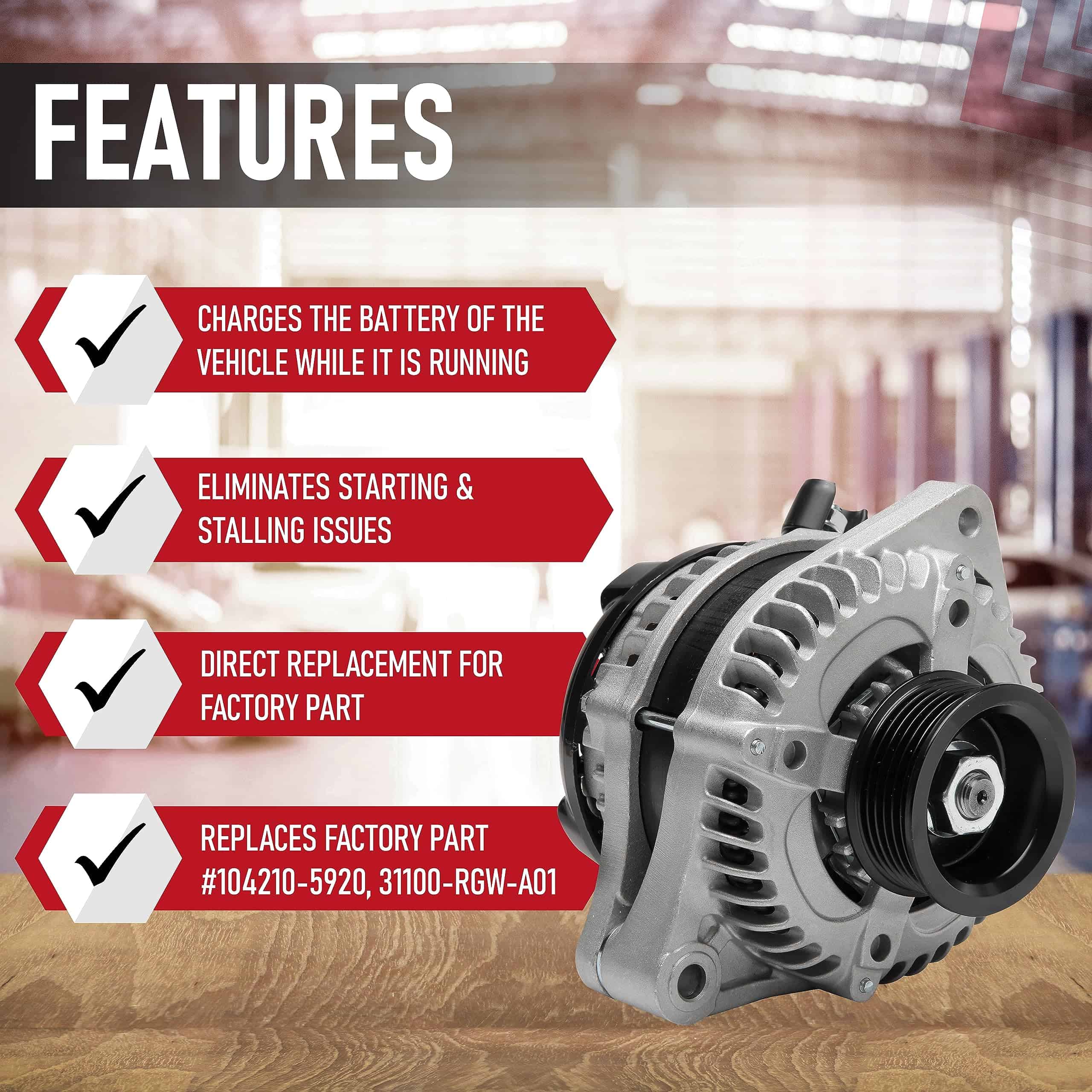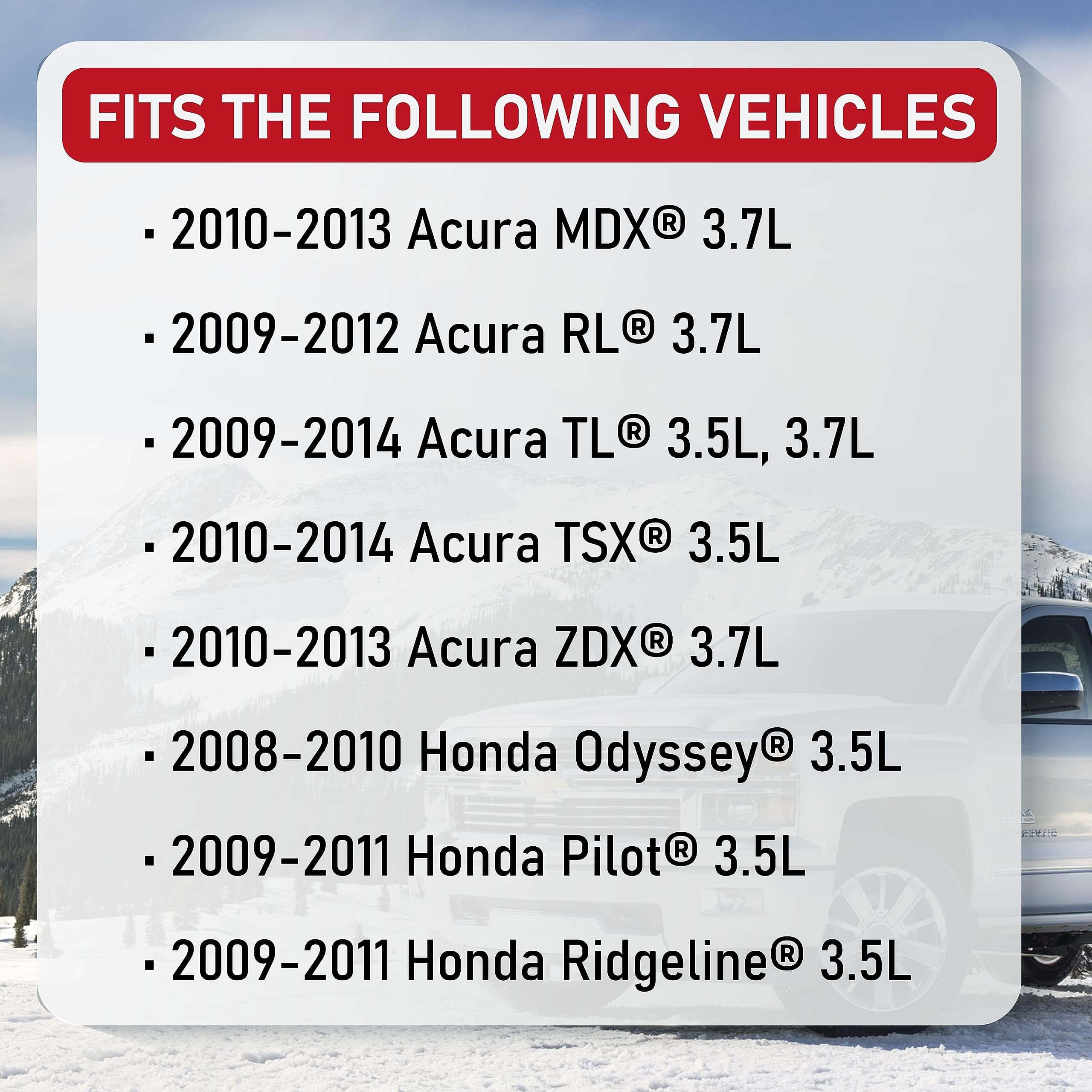 2. Reemplazo compatible para vehículos Acura y Honda 3.5L y 3.7L V6 – MDX 3.7L 2010-2013 | RL 3.7L 2009-2012 | TL 3.5L, 3.7L 2009, 2010, 2011, 2012, 2013, 2014 | TSX 3.5L 2010-2014 | ZDX 3.7L 2010-2013 | Odyssey 3.5L 2008, 2009, 2010 | Pilot 3.5L 2009-2011 | Ridgeline 3.5L 2009-2011. El alternador se puede encontrar fácilmente dentro del compartimento del motor, justo al lado del motor del vehículo.