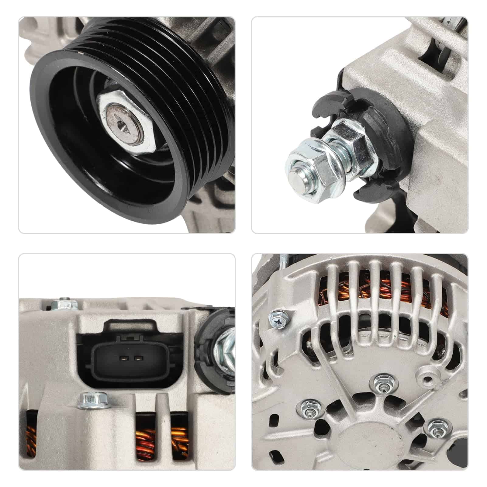 1. Compatibilidad del vehículo: Compatible con I30 1998-2000, I35 2002, I35 2003, I35 2004; Compatible con Maxima 1995-1997, Maxima 1998-2000, Maxima 2002-2003, Murano 2003-2007. 2. Número de referencia: 13826N, 13826, 231000L701, 231000L701R, 231002Y900, 231002Y900R, 2310031U01, 231005Y700, 231005Y700R, 231009Y500, 23100CN100, 2310M0L706, 2310M0L706R, 2310MCN10AR, CN10ARW, LR1110705, LR1110705B, LR1110709, LR1110709B, LR1110709BR, LR1110709C, LR1110709CMR, LR1110710C. 3. Parámetros: Amperaje: 110A; Voltaje: 12V; Rotación: CW (sentido horario); Número de ranuras: Polea de 6 ranuras; Condición: Nuevo; Clase de polea: S6; Regulador/ventilador: IR/IF; Código de enchufe: 306. 4. Construcción premium: Construido con materiales de alto rendimiento, el alternador soporta condiciones adversas, asegurando una entrega de energía y carga de batería confiable para una durabilidad extendida. 5. Soporte al cliente: Nuestra marca está comprometida con un servicio excepcional. Para cualquier pregunta o asistencia, contáctenos, estamos dedicados a brindar las mejores soluciones para sus necesidades.