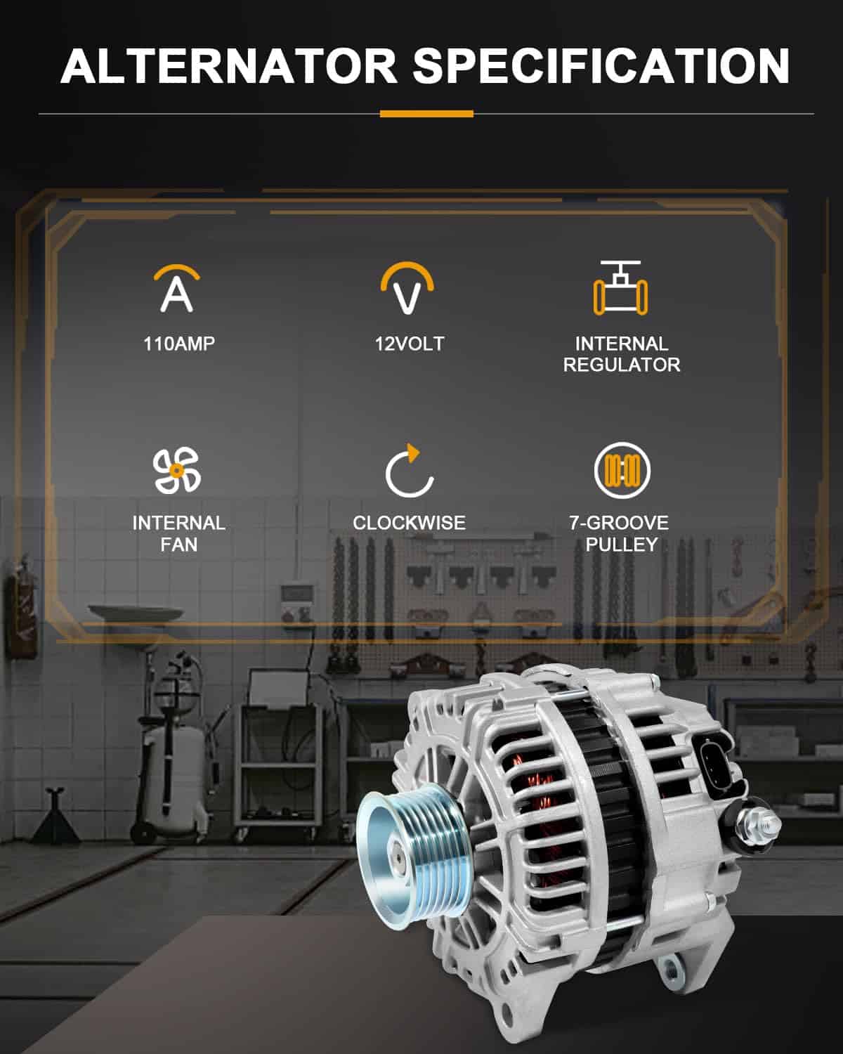 – 110 Amp/12 Volt, CW, Polea de 7 Estrías