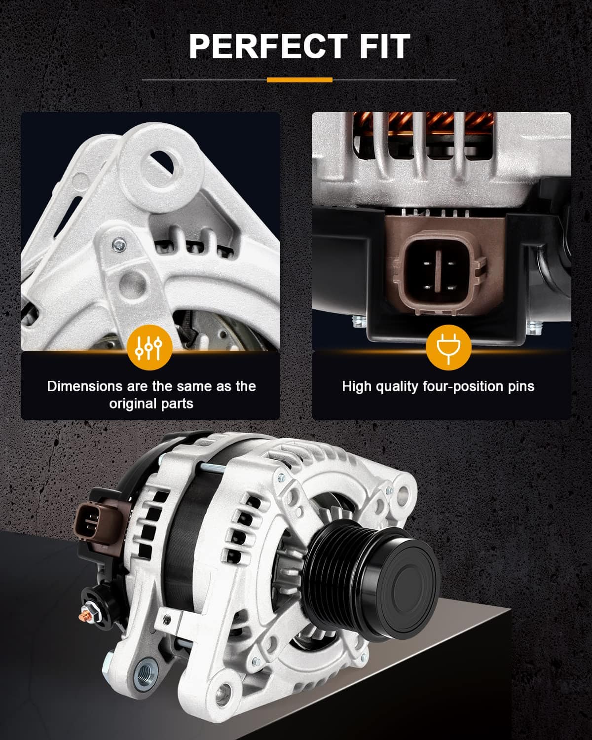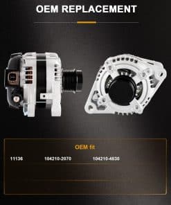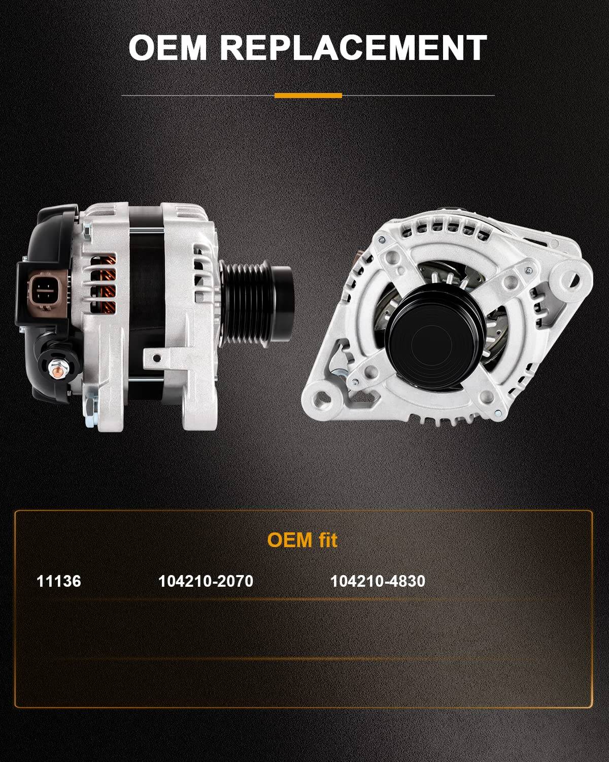 Aplicación 2007-2009 para Lexus RX350 3.5L2005-2015 para Toyota Avalon 3.5L2007-2016 para Toyota Camry 3.5L2008-2012 para Toyota Highlander 3.5L2009-2012 para Toyota RAV4 3.5L Número de pieza 11136 104210-2070, 104210-4830 Alternador 100 Amp/12 Volt, CW, Polea de Desacople de 7 Gajos, Denso IR/IF, Remanufacturado, Reemplaza – Denso 104210-2070, 104210-2071, 104210-2074, 104210-4470, 104210-4471, 104210-4830, 27060-0P141-84, 27060-31080, 27060-31081, 27060-31081-84, Número de Referencia Original TN104210-4470, para Toyota 27060-0P140, 27060-0P141, 27060-0P141-84, 27060-31080, 27060-31081, 27060-31081-84, 27060-31082
