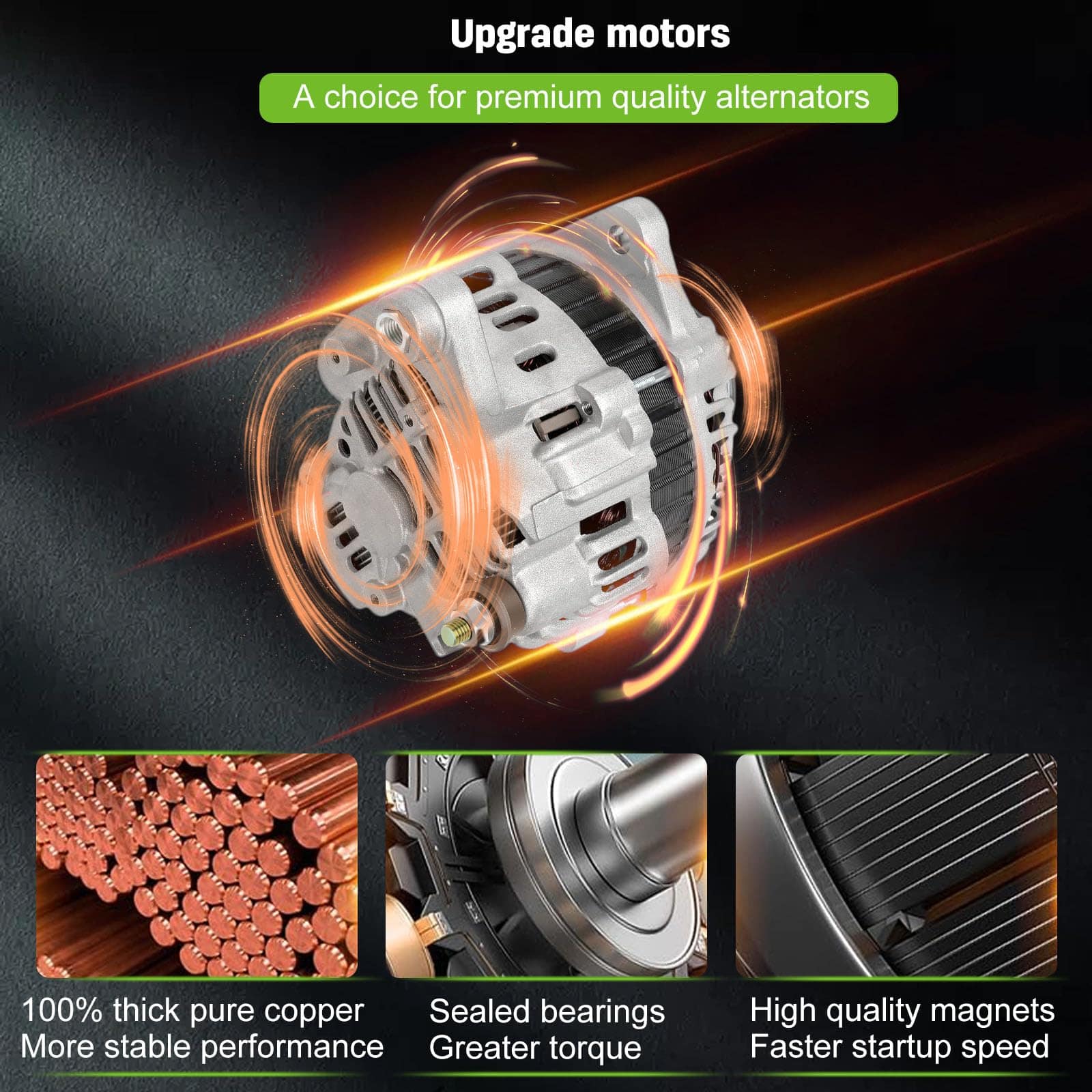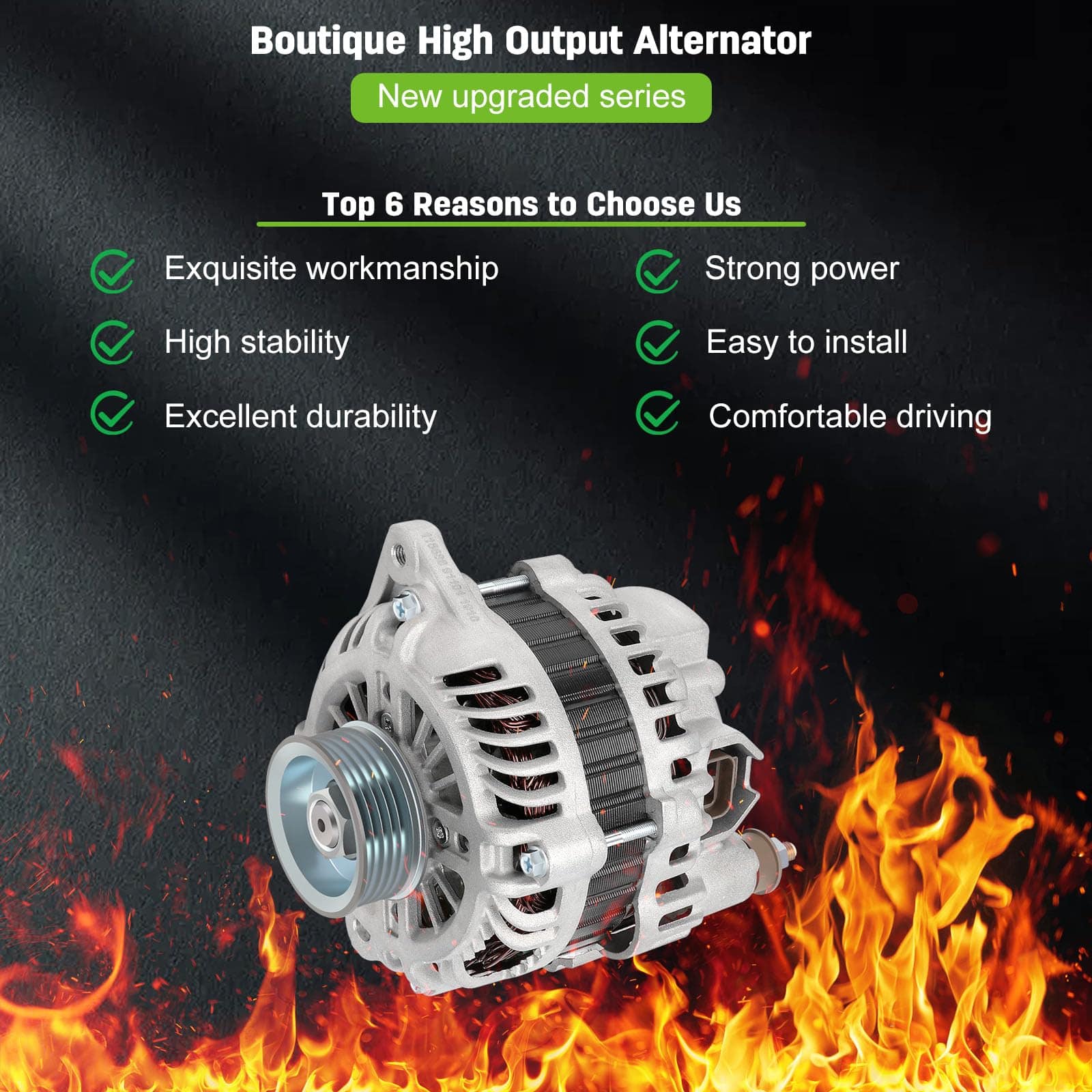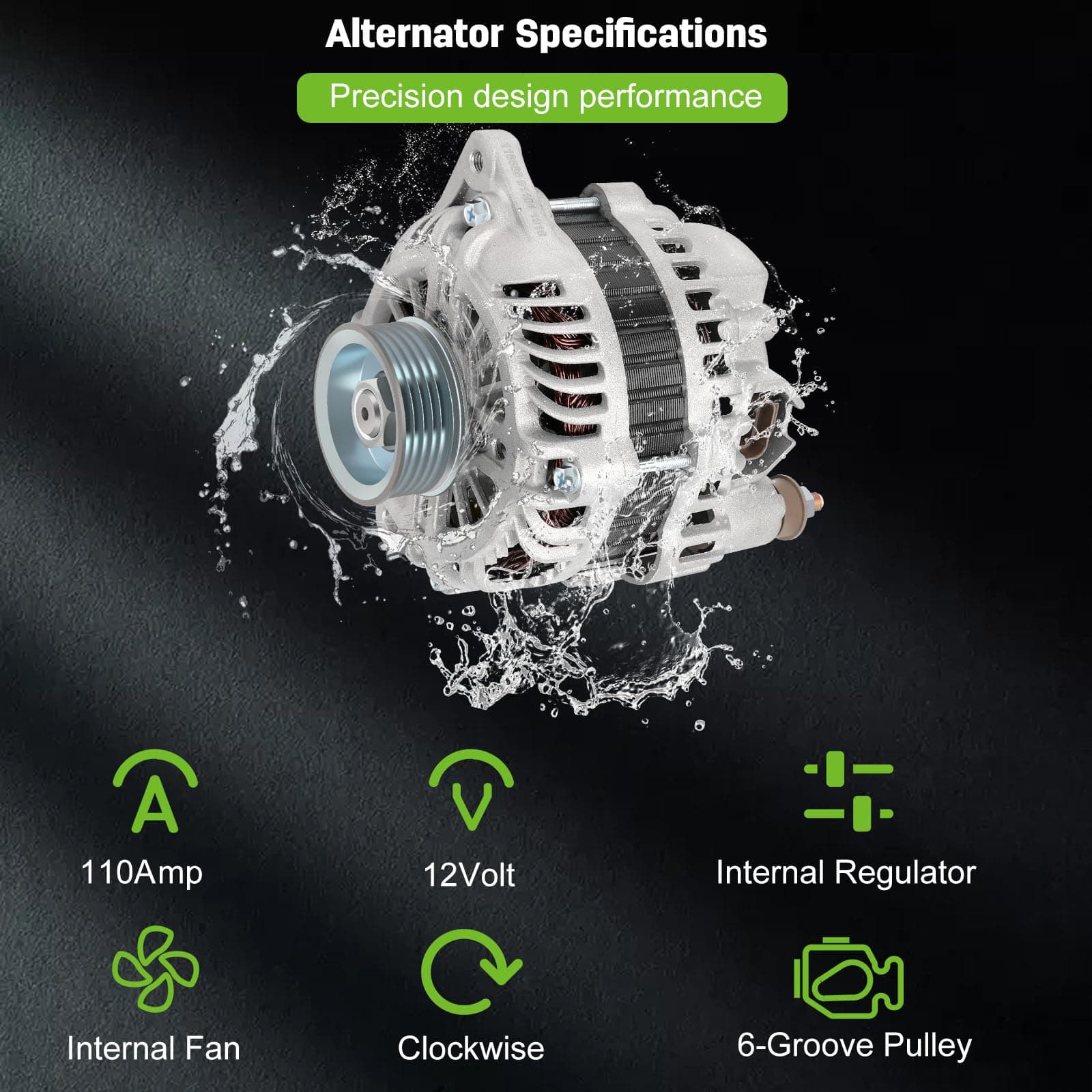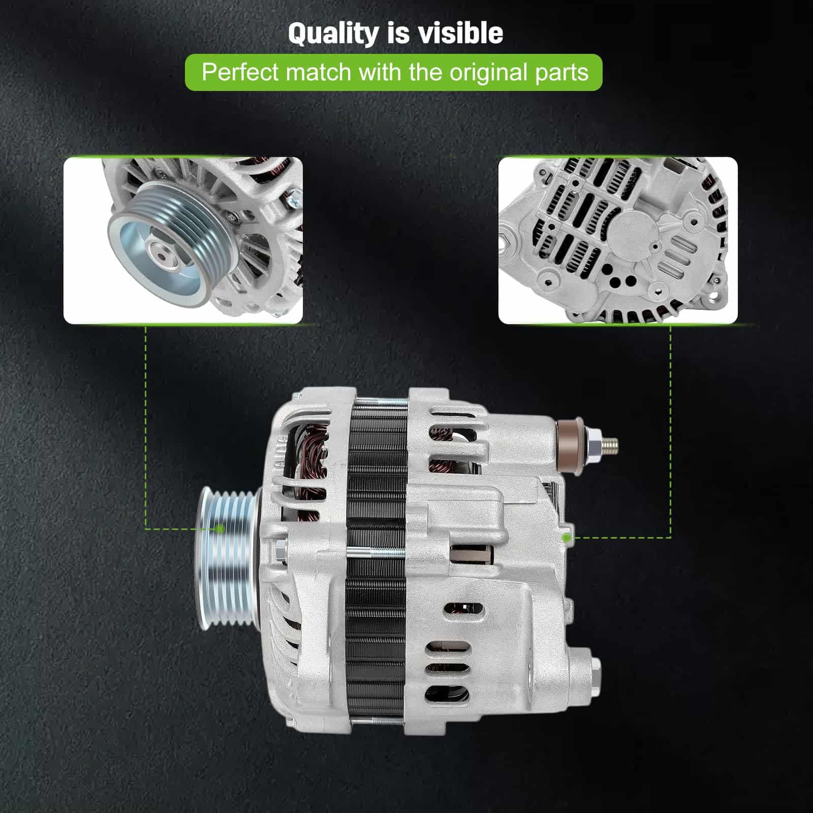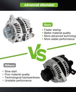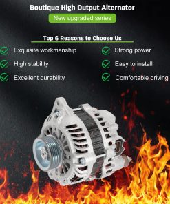 Nuevo alternador de repuesto SCITOO compatible con 2003-2008 Para Infiniti FX35 3.5L 2003-2006 Para Infiniti G35 3.5L 2003 Para Infiniti QX4 3.5L 2003-2006 350Z 3.5L 2003-2004 Pathfinder 3.5L. El alternador tiene una potencia de 110 Amperios/12 Voltios, rotación en sentido horario, polea de 6 ranuras, para Mitsubishi IR/IF. 100% nuevo, alternador de alta potencia que es compacto y ligero, totalmente compatible con el sistema de equipo de su vehículo. Este alternador es un reemplazo directo OEM para su parte defectuosa, con números OE – 11051, AMT0178, A3TB4291, 400-48055, A3TB4291, 23100-AM610. Los alternadores premium de SCITOO son fabricados mediante fundiciones mecanizadas CNC de precisión, con aumento de potencia y disposiciones adicionales para refrigeración: Ventilador interno; que reducen el estrés en el alternador y aumentan su vida útil para una experiencia de conducción más confiable. Este reemplazo de alternador es confiable y duradero, con rodamientos 100% probados según estándares OE y rellenados con lubricante de grado OEM. Todas las dimensiones, superficies de montaje clave y puntos de contacto se miden y evalúan para un ajuste adecuado. Las pruebas rigurosas y aceleradas garantizan la calidad y durabilidad del producto.