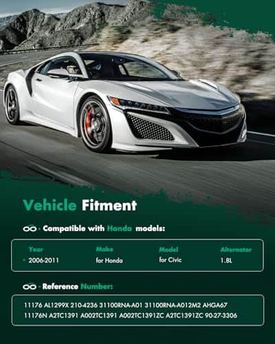 Alternador SCITOO 11176 para Honda Civic L4 1.8L 2006-2008,