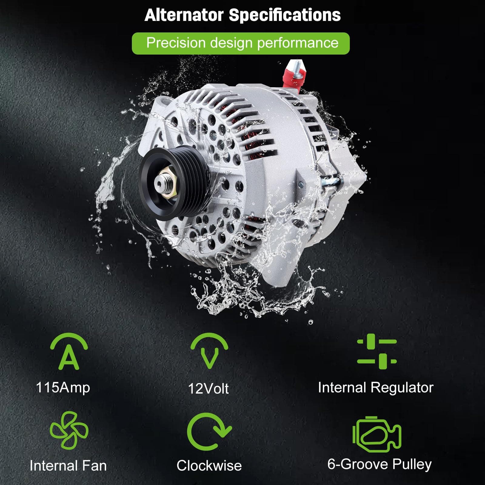 Compatible con: Ford Explorer 2004-2005, Ford Explorer Sport Trac 2004-2005, Ford Ranger 2006, Mazda B4000 2006, Mercury Mountaineer 2004-2005 Especificaciones del artículo: 115 Amp/12 Volt, CW, Polea de 6 ranuras, Enchufe a las 03:00 en el reloj. Serie Ford 3G IR/IF 100% Nuevo Rectificador WAI-Transpo presenta diodos de 13 mm con terminaciones de diodos crimp-weld. Notas – Imagen representativa, el artículo real puede variar. Reemplaza números de parte: Ford 4L2T-10300-DB, 4L2T-10300-DD, 4L2Z-10346-DA, 5L2T-10300-AA, 5L2Z-10346-AA, 6L2T-10300-BA, 6L2Z-10346-BA, 6L2Z-10346-BARM, 6L2Z-10346-BARM1, Ingeniería Ford 4L2T-DB, 4L2T-DD, 5L2T-AA, 6L2T-BA, Mazda 1F72-18-300A, 1F72-18-300B, 1F72-18-300R0B Atenciones: Por favor verifique la lista de compatibilidad anterior para asegurarse de que se ajuste a su vehículo. Paquete incluido: 1 Alternador