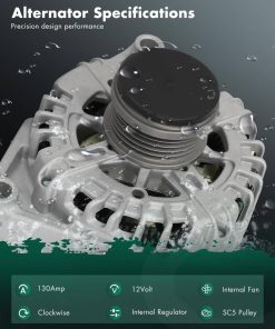 Alternador SCITOO para Chevrolet Cruze 2012 2013 2014 2015, Cruze Limited 2016, L4 1.4L- 12V 130Amp CW SC5 Polea Clase. Este nuevo alternador automotriz de reemplazo es adecuado para los modelos de Chevrolet Cruze mencionados. Presenta un voltaje de 12V, un amperaje de 130A, rotación en sentido horario, regulador IR, ventilador IF y estrías de clase de polea SC5. Se trata de un producto nuevo y de alto rendimiento, compacto y ligero, que es totalmente compatible con el sistema electrónico de su vehículo. Con su diseño eficiente y duradero, este alternador ofrece una excelente fiabilidad y rendimiento. Este alternador de reemplazo directo cuenta con los números OEM siguientes: 13581891, 13588290, 210817010402, 2614154A, 430810125742, 9215392, 931238, 95939944, FG12S048, FG12S054, FG12S065, GM13581891, L84730, 12090662, 13597227. Para una instalación sencilla, desconecte el electrodo negativo de la batería y siga las instrucciones detalladas proporcionadas en la descripción del producto. Si tiene alguna pregunta o necesita asistencia técnica, no dude en contactarnos. SCITOO ofrece una amplia gama de alternadores para la mayoría de automóviles, camionetas y remolques. Por favor, seleccione su vehículo (año/marca/modelo/acabado) en la esquina superior izquierda de la página para confirmar la compatibilidad o consulte la información del vehículo en la descripción.