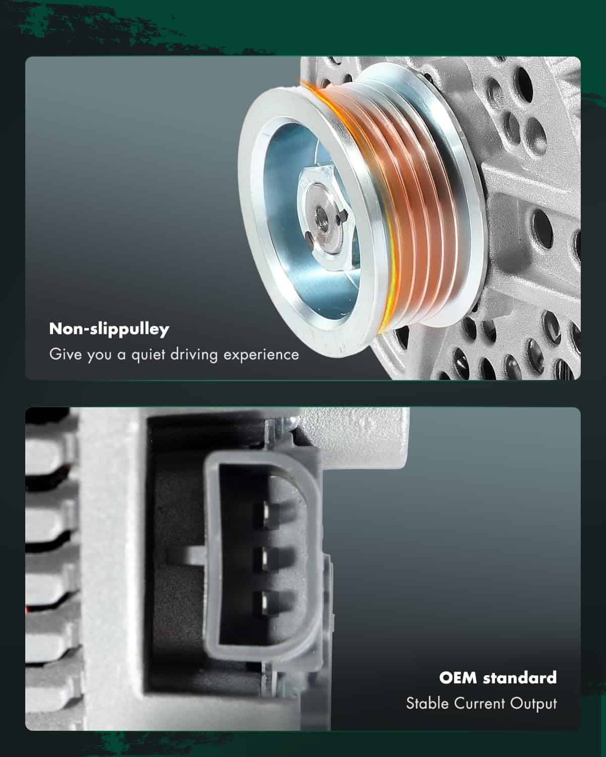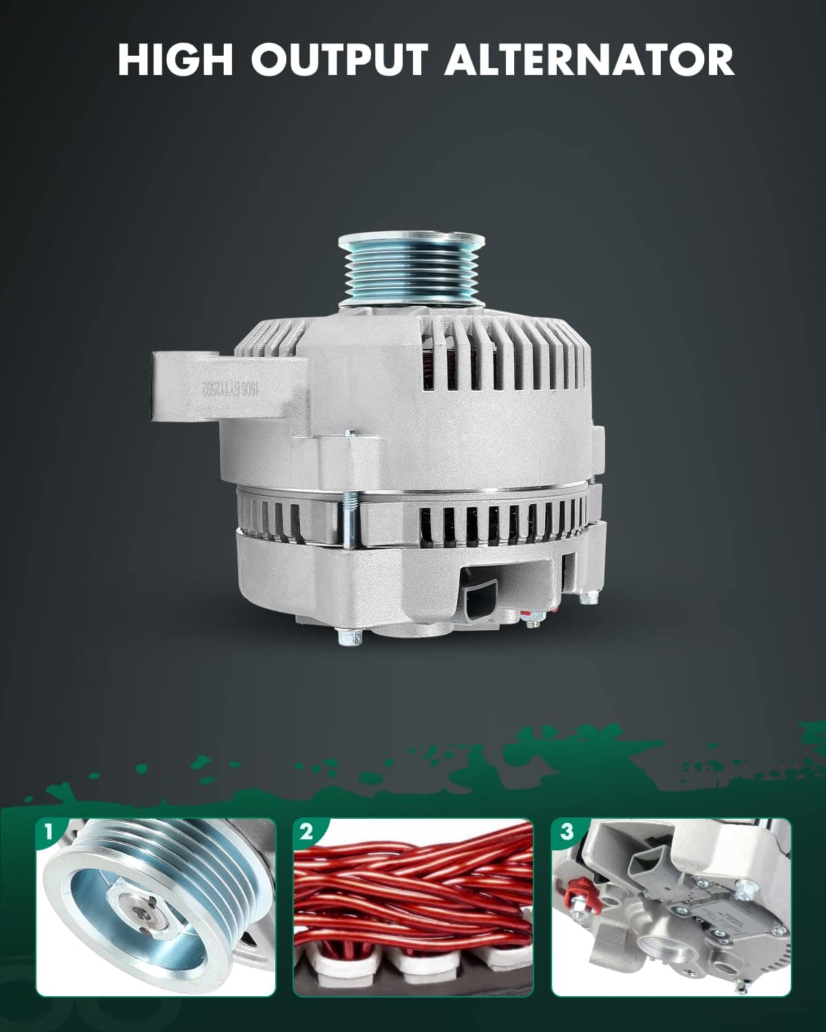 Alternador SCITOO de repuesto para Ford E-150 2004-2008, E-150 Club Wagon 2004-2005, E-250 2004-2008, E-350 Club Wagon 2004-2005. Este alternador de alta calidad proporciona una solución confiable y duradera para su vehículo. Con un voltaje de 12V y una capacidad de 130 amperios, este alternador es capaz de garantizar un rendimiento óptimo en todas las condiciones de funcionamiento. Su diseño compacto y ligero lo hace fácil de instalar, y su compatibilidad con el sistema electrónico de su vehículo asegura un funcionamiento sin problemas. El número de referencia OEM incluido garantiza una compatibilidad perfecta con su vehículo, y las instrucciones detalladas de instalación facilitan el proceso. No se arriesgue con un alternador de baja calidad, confíe en SCITOO para obtener un rendimiento excepcional y una fiabilidad sin igual en cualquier situación.