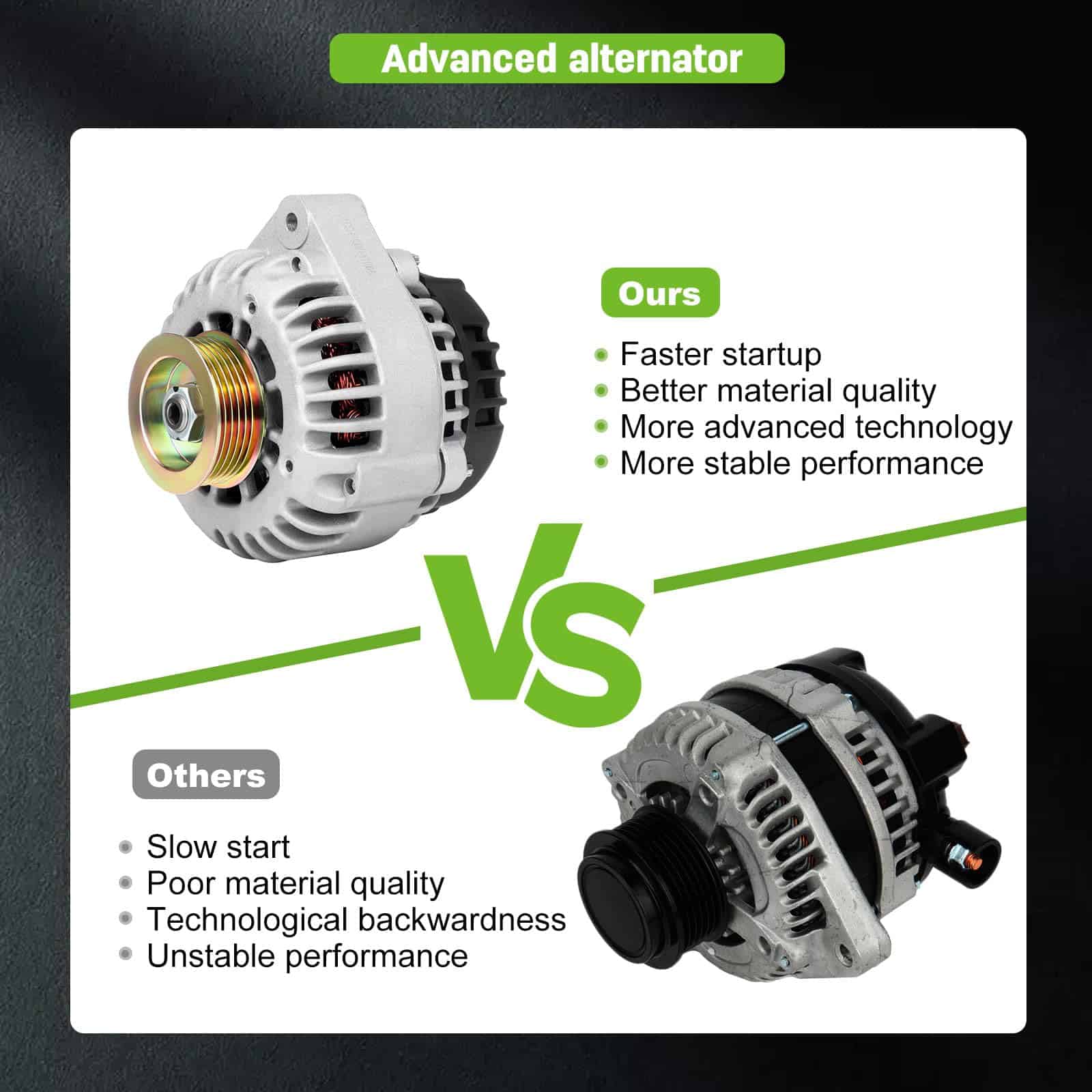 El alternador SCITOO es un reemplazo premium para vehículos Acura CL y Honda Accord con un rendimiento óptimo. Este alternador de alta calidad es compacto, liviano y completamente compatible con el sistema de tu vehículo. Cuenta con CNC mecanizado con precisión y fundiciones para una mayor salida y un diseño que reduce el estrés y aumenta la vida útil del alternador. Las pruebas rigurosas garantizan la calidad y durabilidad del producto, mientras que los rodamientos son 100% probados y repuestos con lubricante de grado OEM para un ajuste adecuado.