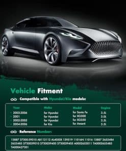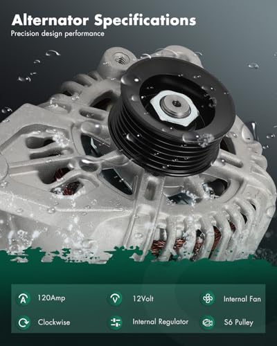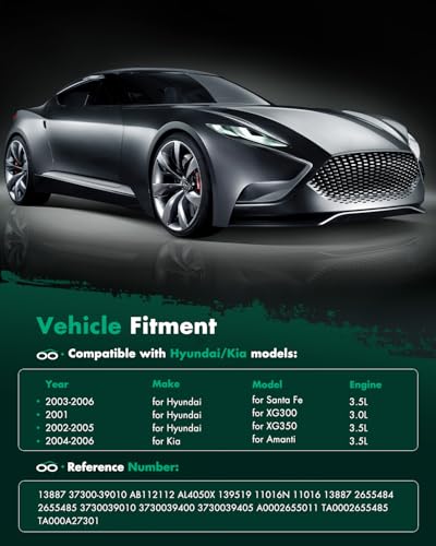 Alternador nuevo de alta calidad compatible con Hyundai Santa Fe 3.5L 2003, 2004, 2005, 2006, XG300 3.0L 2001, XG350 3.5L 2002, 2003, 2004, 2005, y Kia Amanti 3.5L 2004, 2005, 2006. Números de referencia directa del OEM: 37300-39010 AB112112 AL4050X 139519 11016N, 11016, 13887, 2655484, 2655485, 3730039010, 3730039400, 3730039405, A0002655011, TA0002655485, TA000A27301. Instalación sencilla: desconectar la batería, prestar atención a la tensión del cinturón de transmisión, apretar todos los tornillos. Compatible con la mayoría de vehículos.
