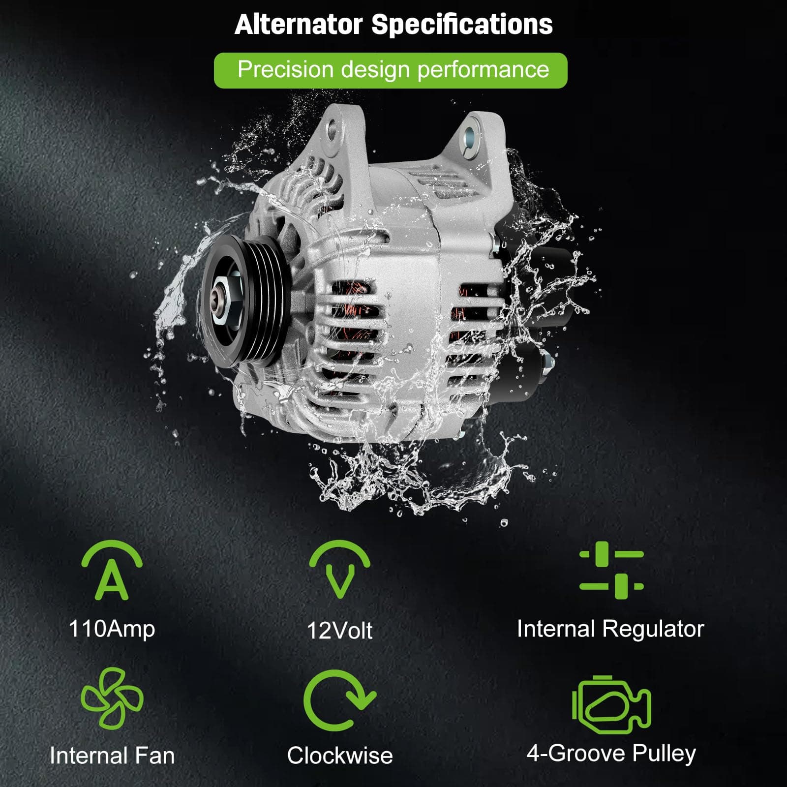110 amperios / 12 voltios, CW, polea de 4 ranuras