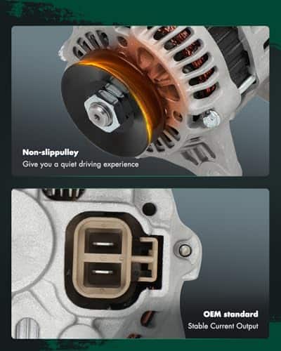 Este alternador de alta calidad de SCITOO es un reemplazo perfecto para vehículos Nissan con motores H20 y H25 de gasolina. El alternador tiene una potencia de 12V y 35 amperios, con una rotación en sentido horario y una polea de Clase V1. Se adapta a una amplia gama de modelos de Nissan, incluyendo CPJ, KAP, KCEH, KCH01, KCH02, KCPH, KH02, KPH y KUGH, así como equipos TCM para FG20N. El alternador es fácil de instalar, con instrucciones detalladas incluidas en la descripción. Asegúrate de desconectar la batería antes de la instalación y seguir las instrucciones para evitar daños en el alternador y la correa de transmisión. Este alternador de SCITOO es una solución confiable y de alta calidad para garantizar un rendimiento óptimo de tu vehículo.