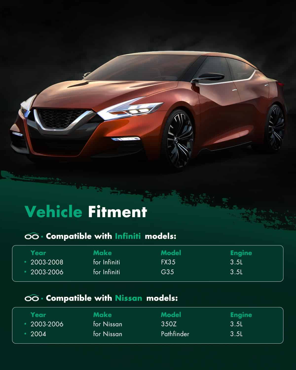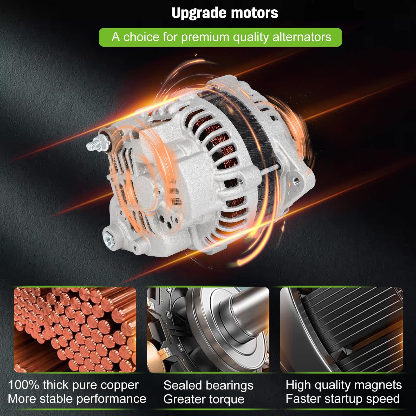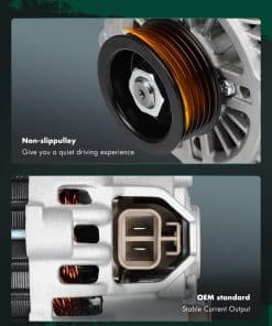 1. Alternador de ajuste – Reemplazo de alternador automotriz nuevo para Infiniti FX35 2003, FX35 2004, FX35 2005, FX35 2006, FX35 2007, FX35 2008, G35 2003, G35 2004, G35 2005, G35 2006, 350Z 2003, 350Z 2004, 350Z 2005, 350Z 2006, Pathfinder 2004. 2. Especificaciones del alternador – Voltaje: 12V; Amperaje: 110A; Rotación: CW (En sentido horario); Regulador: IR; Ventilador: IF; Ranuras: Clase de polea S6; Condición: Nuevo, alternador de alta potencia compacto y ligero, completamente compatible con el sistema electrónico de su vehículo. 3. Número de referencia del alternador del automóvil – Reemplazo OEM directo para su pieza defectuosa, número OE: 11052 23100-CD010 A003TG0191 203-5047 AMT0179 334-1434 2-11052 12569 139563 213-9563 11051 90-27-3302 11052A AL2399X 60855 210-4211 13900N A-8981 A3TG0191. 4. Instalación fácil – (1) Asegúrese de desconectar el electrodo negativo de la batería; (2) Al reemplazar, preste atención a la tensión adecuada de la correa de transmisión: si está demasiado floja, puede deslizarse y causar generación de energía insuficiente; si está demasiado apretada, puede dañar fácilmente la correa y los rodamientos del alternador; (3) Al reemplazar, preste atención al apriete de todos los tornillos. Si tiene algún problema durante el uso, contáctenos, le proporcionaremos soporte técnico profesional. 5. Nota SCITOO Auto suministra alternadores para la mayoría de automóviles, SUVs, camionetas y remolques. Seleccione su vehículo (año / marca / modelo / recorte) en la esquina superior izquierda de la página para confirmar la compatibilidad o consulte la información del vehículo en la descripción.