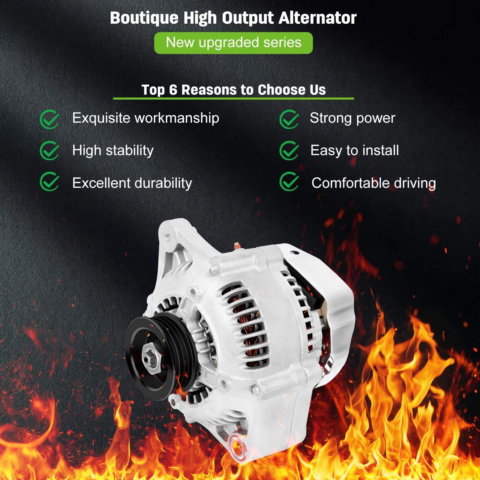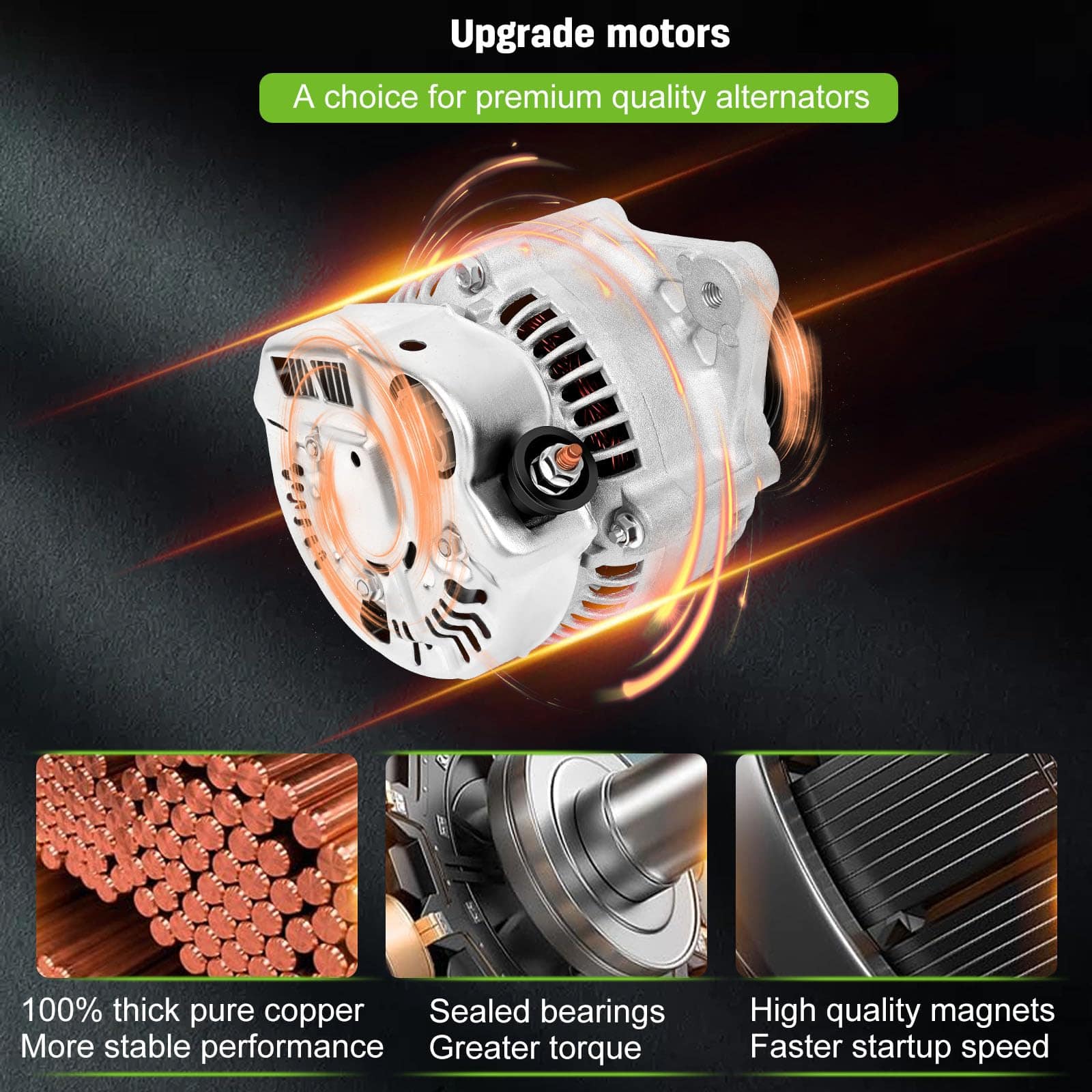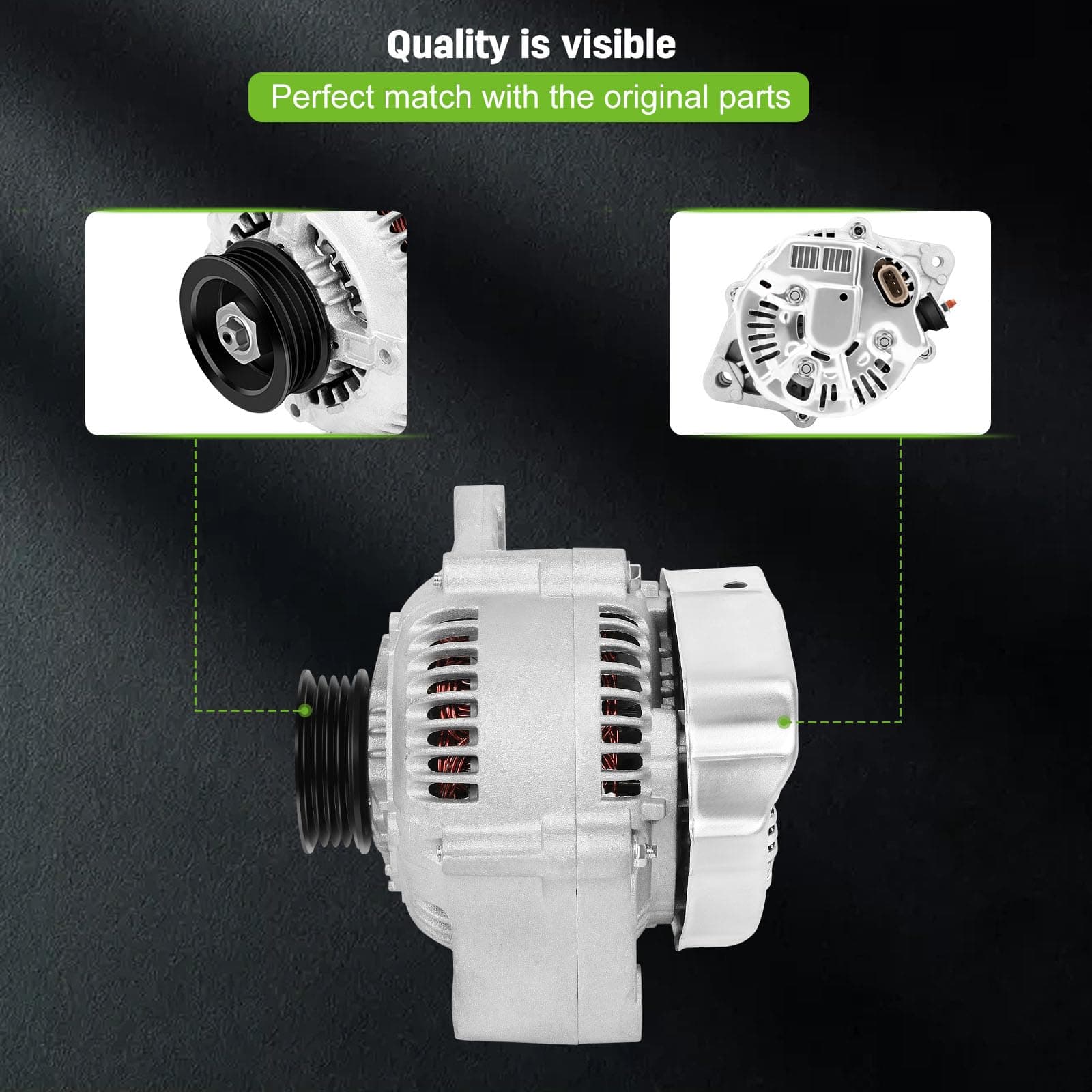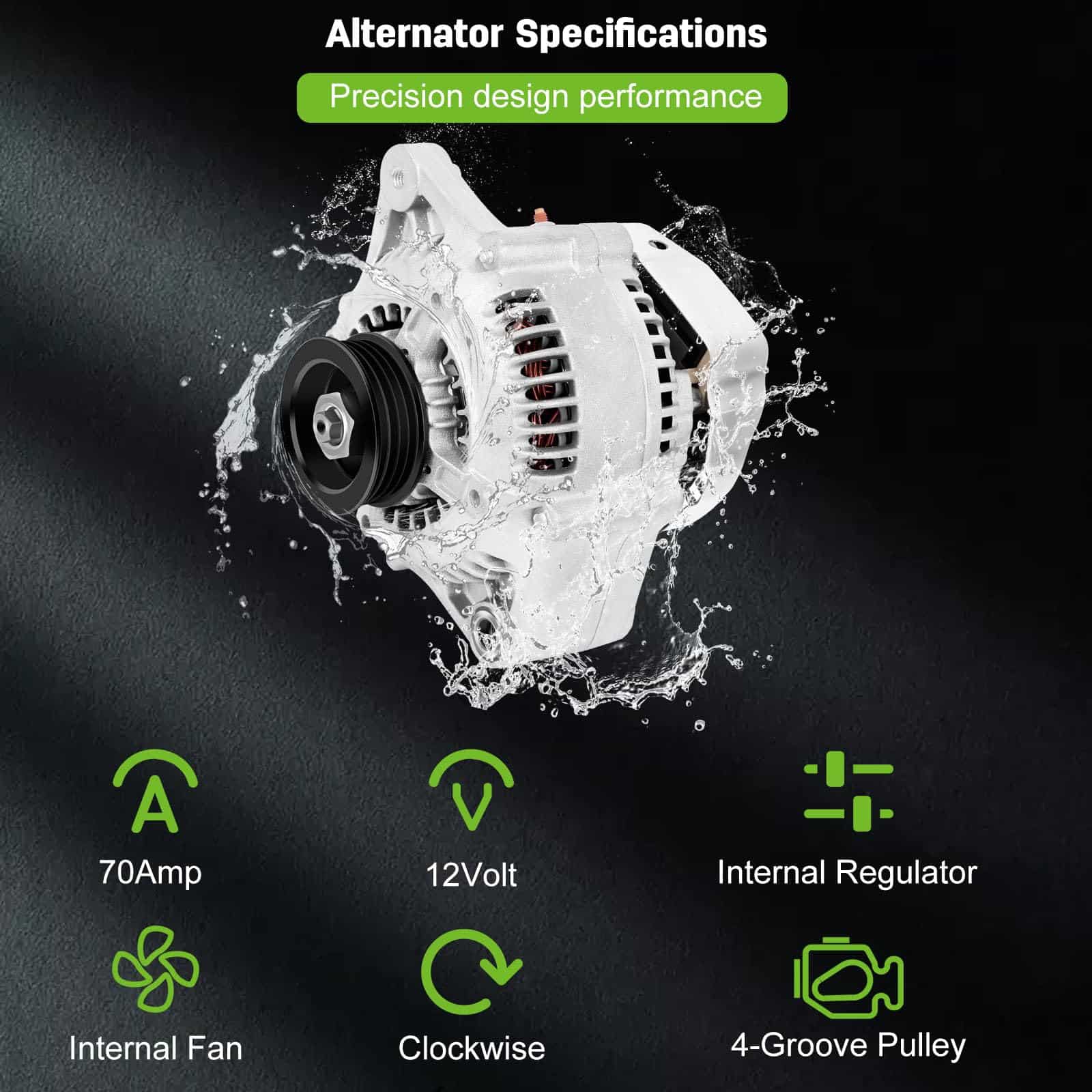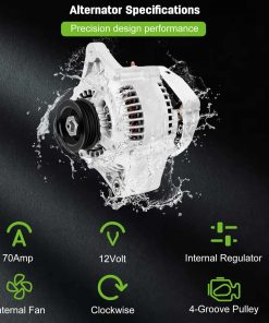 Este alternador de alta calidad de SCITOO es compatible con diversos modelos de Toyota, asegurando un rendimiento óptimo y confiable. Con una capacidad de 70 Amperios y 12 Voltios, este alternador cuenta con una polea de 4 ranuras y funciona en sentido horario. Es un producto 100% nuevo que proporciona una larga vida útil gracias a sus componentes premium, como cepillos de alta calidad. Además, ha sido sometido a estrictas pruebas de ciclado para garantizar su calidad, durabilidad y eficiencia. Con números de reemplazo como 102211-5040, 102211-5041 y 102211-5042, este alternador es la opción perfecta para tu Toyota 4Runner, T100, Tacoma, o Tundra V6.