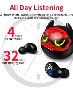 4. Carga en cualquier lugar: Los auriculares Bluetooth Cartoon Red B91 duran hasta 5 horas de reproducción con una sola carga, y puedes confiar en la conveniente caja de carga para obtener una reproducción adicional de 30 horas, para que no te quedes con la batería baja.