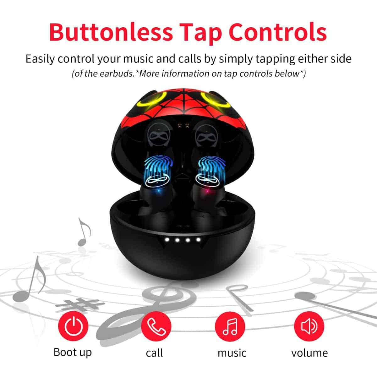 3. Control táctil inteligente: La función de control táctil de los auriculares inalámbricos B91 Cartoon Red es fácil y conveniente de operar. Toca una vez para reproducir/pausar la música y responder llamadas, toca dos veces para avanzar/retroceder, mantén presionado para ajustar el volumen. Puedes controlarlo fácilmente sin necesidad de operar tu teléfono.