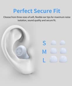 2. Ultra livianos y excelente comodidad: El diseño ergonómicamente indoloro del auricular puede adaptarse perfectamente a tus oídos y mantenerlos firmes, proporcionándote un uso diario fácil. Cada lado pesa solo 3,8g/0,13oz, lo que puede evitar la fatiga de tus oídos. Es difícil sentir su presencia durante el ejercicio o el uso diario. Viene con 3 almohadillas suaves y cómodas en tamaños L, M y S.
