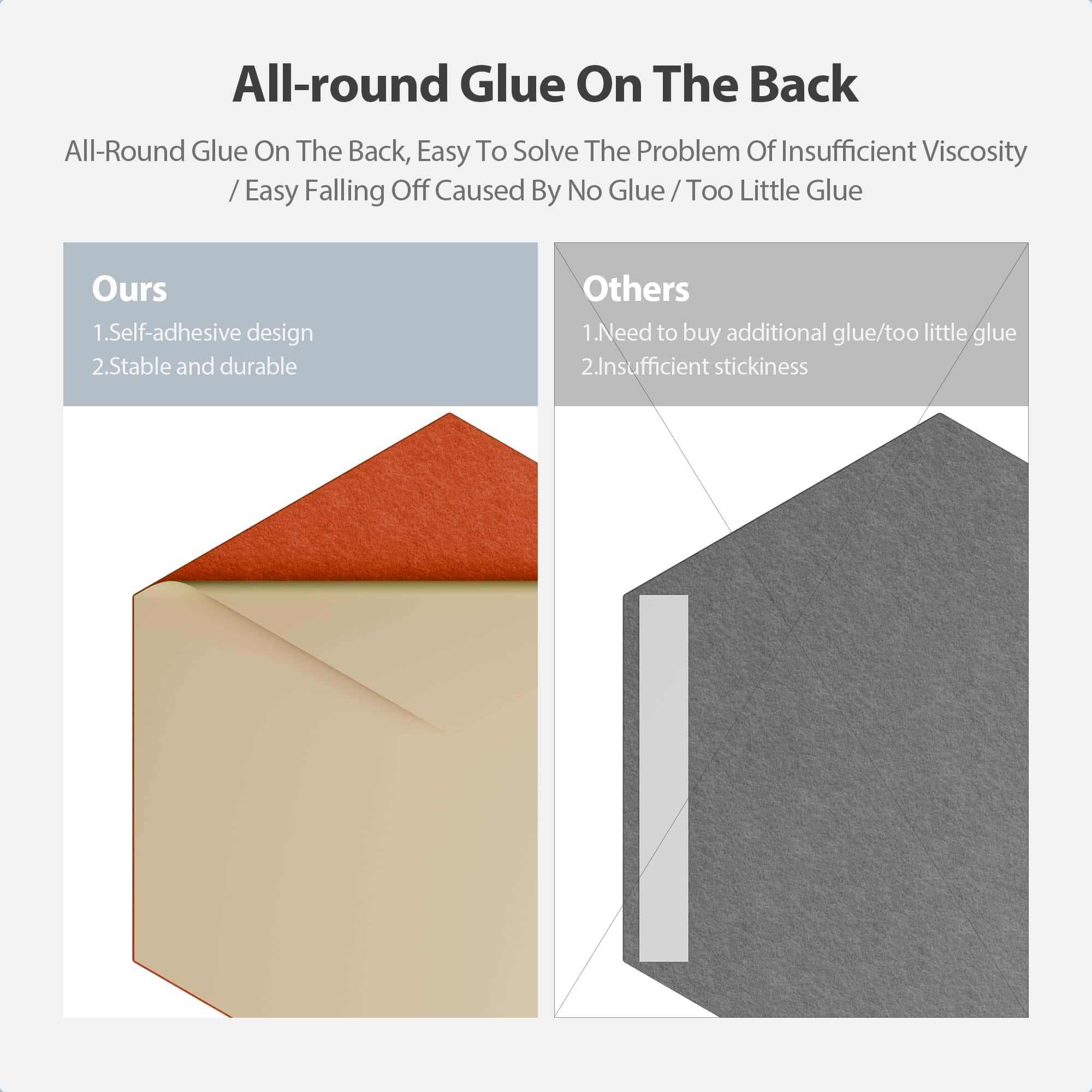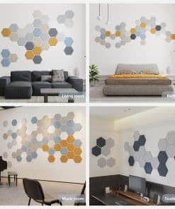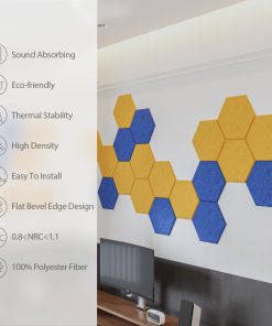 Si trabajas o vives en un ambiente ruidoso, entonces el material acústico de Amantech te brindará una gran conveniencia en tu vida. Al pegarlo en la pared o techo, reducirás en gran medida la audición de ruidos molestos, así como la posibilidad de recibir quejas sobre ruido. Hecho de material de fibra de poliéster 100%, el panel absorbente de sonido en general es inodoro, no tóxico y libre de formaldehído. Prestar atención a la seguridad del cliente es el criterio fundamental de Amantech. Nuestro panel absorbente de sonido adopta un diseño de panal hexagonal. La forma hexagonal puede lograr una amplia gama de efectos de absorción de sonido y reducción de ruido. Al mismo tiempo, puedes usar el panel absorbente de sonido para un diseño a la moda, paneles absorbentes de sonido en varios colores, que te permitirán hacer combinaciones de diseño. El tablero absorbente de sonido tiene pegamento en la parte posterior, por favor, quita la capa protectora directamente al usarlo, es adecuado para todo tipo de paredes y se puede pegar fácilmente, puedes usar un cuchillo para cortar fácilmente la forma que desees, es ideal para estudios profesionales, salas de ensayo, salas de conciertos, podcasts, iglesias, teatros en casa, salas de canto, estudios caseros, oficinas, perreras, armarios ¡y más! Brindaremos un servicio postventa completo. Si tienes alguna pregunta o estás insatisfecho con nuestros productos, no dudes en contactarnos, ¡responderemos todas tus dudas!