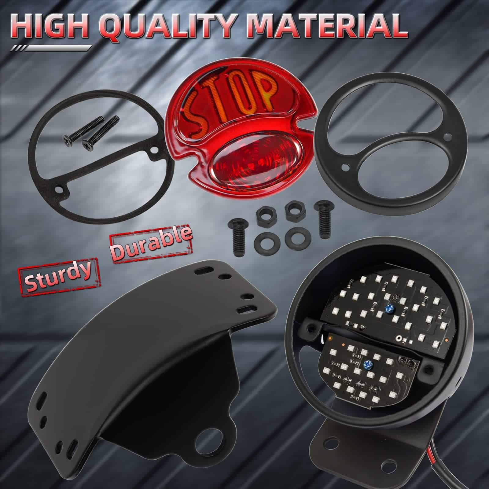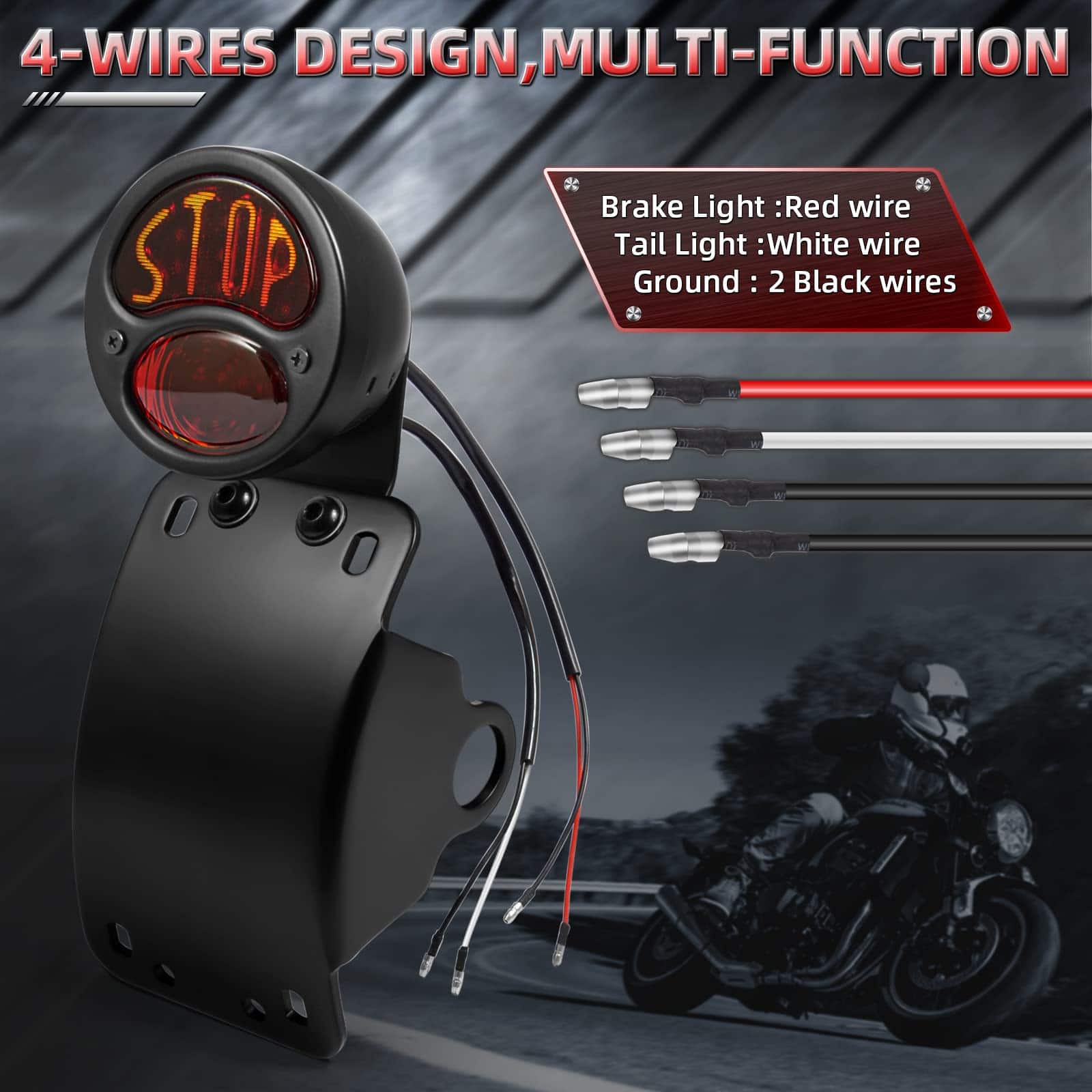 Se trata de una luz trasera LED de montaje lateral de posventa con soporte de matrícula compatible para Harley, Honda, Yamaha, Suzuki, Kawasaki, Custom Bike, Cruiser, Choppers, etc.