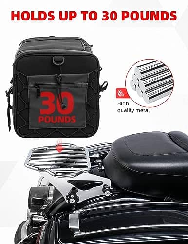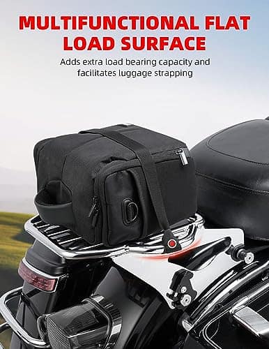 2. UN ACCESORIO IDEAL: El soporte de montaje trasero para motocicletas de Amazicha, ¡la solución definitiva para llevar equipaje en tu moto de touring! Diseñado para ser versátil, práctico y duradero, este soporte de equipaje para Harley Davidson proporciona un espacio seguro para llevar tus bolsas, equipo de camping u otros artículos esenciales que necesitas en la carretera.
