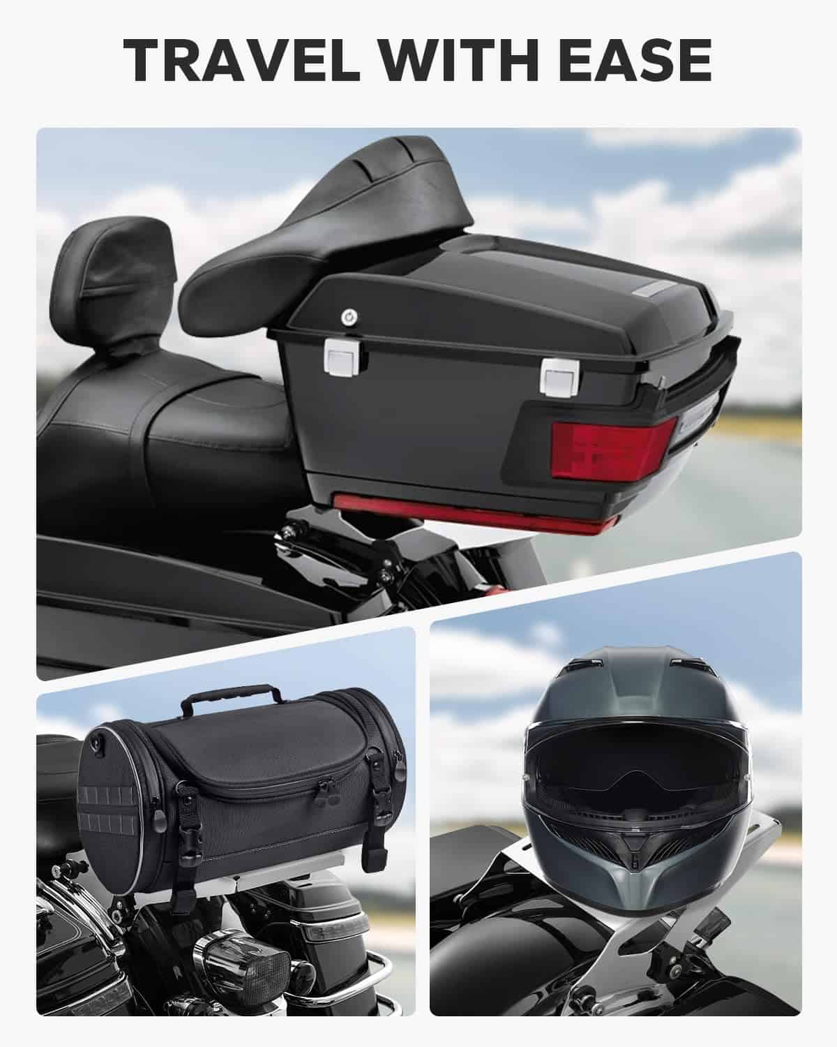 2. {SOPORTE FUERTE DE 50 LBS} Nuestro soporte de maleta desmontable para Harley Touring está fabricado con acero de grado aeronáutico, proporciona un fuerte soporte para equipaje y maletas, de hasta 50 lbs, y ofrece un amplio espacio para equipos al aire libre.