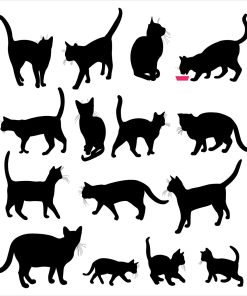 Ambesonne Juego de Funda nórdica de Gato, Siluetas de Gato