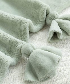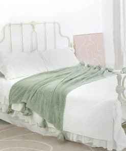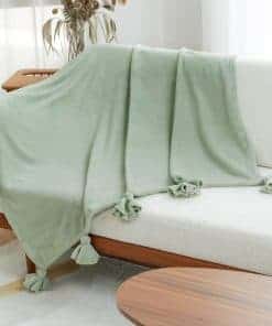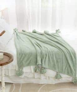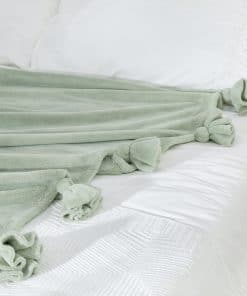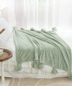 Mantas de forro polar con borlas en color verde salvia, tamaño 60″x 80″